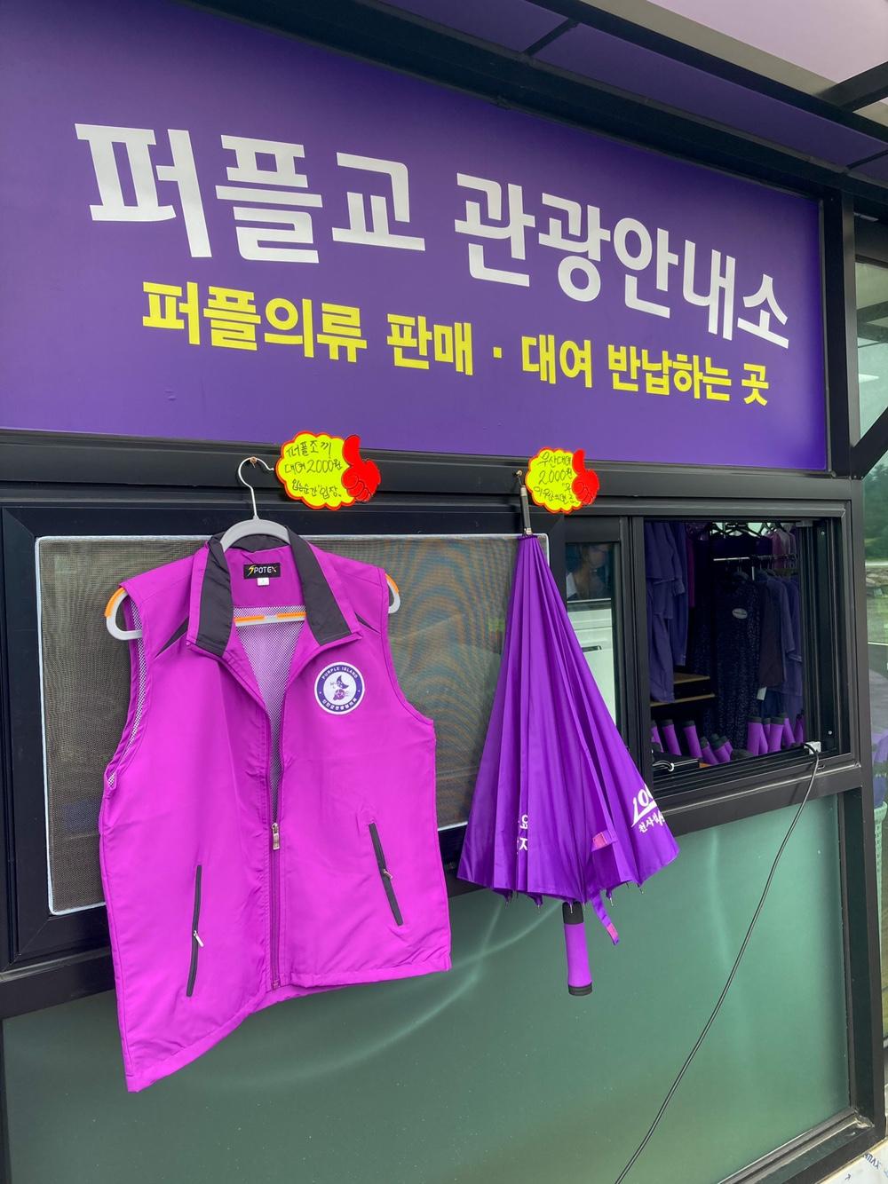 ค่าแท็กซี่จะอยู่ที่ประมาณ 9,000 วอน โดยคนขับจะมาส่งที่บริเวณสะพานสีม่วง ซึ่งเป็นต้นทางในการเดินไปยังเกาะสีม่วงค่ะ เวลานี้ก็มีอาหารขายนะคะ แต่ราคาค่อนข้างสูงเลยละค่ะ ตอนที่เราไปเกาะสีม่วงแห่งนี้ยังไม่มีการเก็บค่าเข้านะคะ แต่มีป้ายติดราคาค่าเข้าไว้ ผู้ใหญ่ 3,000 วอน, ทหารและเด็กนักเรียน 2,000 วอน และเด็กเล็ก 1,000 วอน