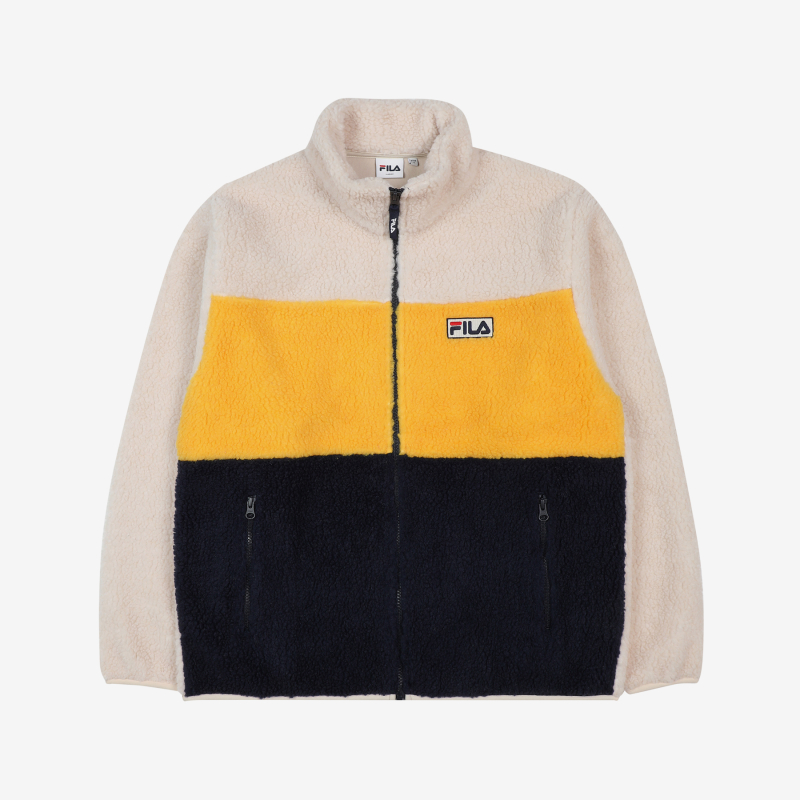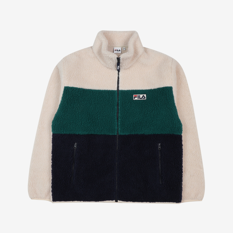 Heritage blocking jacket เป็นเสื้อแจ็คเกตที่มาพร้อมโทนสีซึ่งเป็นเอกลักษณ์ของ Fila ด้านในของเสื้อเป็นผ้าตาข่ายซึ่งเพิ่มความรู้สึกสบายในการสวมใส่ ดีไซน์ของเสื้อมาในแบบเรโทรที่กำลังได้รับความนิยมอย่างมากในเกาหลีตอนนี้
