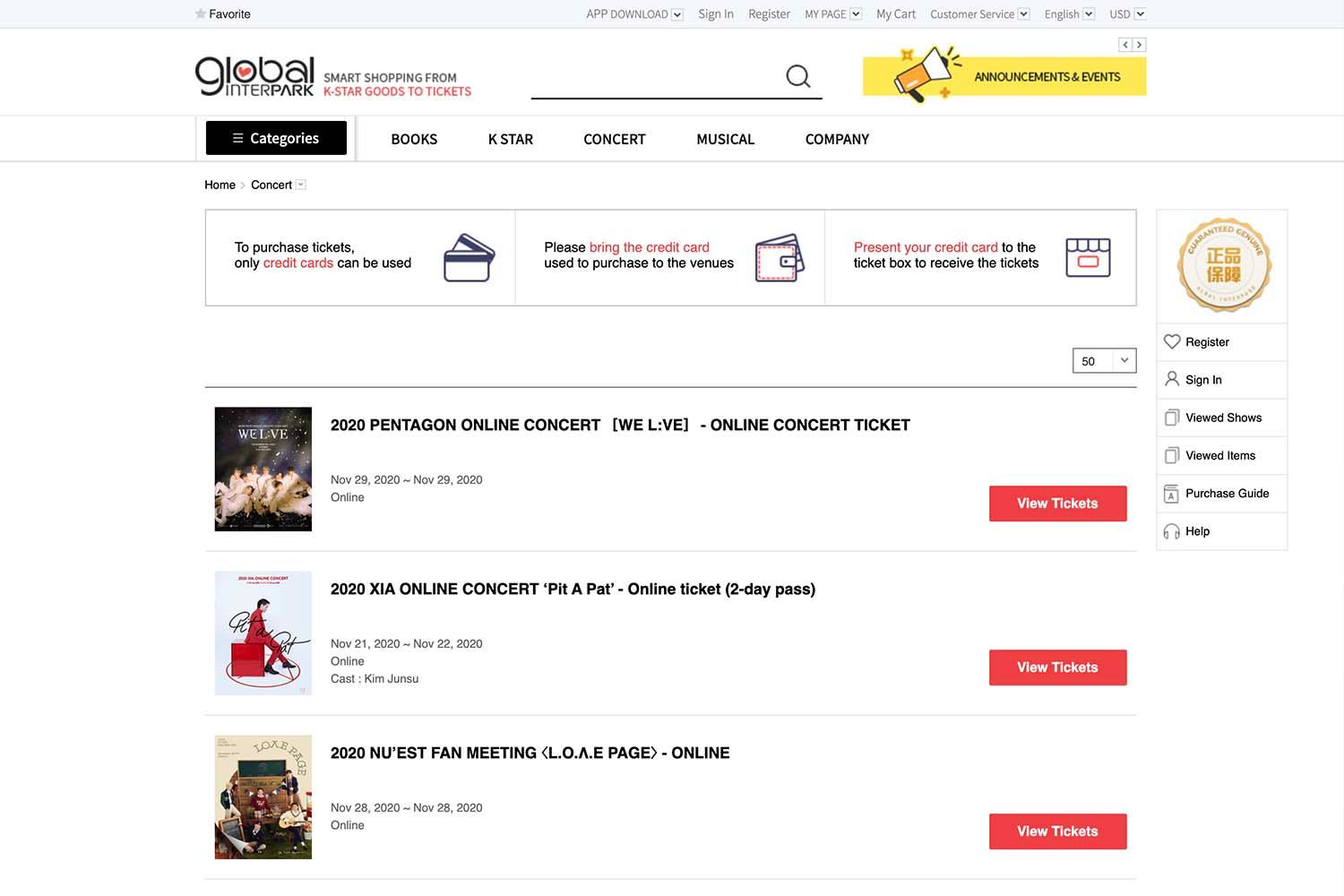 สำหรับที่บินมาเกาหลีเพื่อดูการแสดงหรือชมเทศกาลพิเศษต่างๆ น่าจะต้องเตรียมตั๋วเข้าชมกันมาเป็นที่เรียบร้อยแล้ว คอนเสิร์ตของศิลปินหลายกลุ่มที่เปิดขายตั๋วผ่าน Global Interpark Tickets, Auction ซึ่งเป็นเว็บไซด์ที่ชาวต่างชาติสามารถซื้อได้เองค่ะ