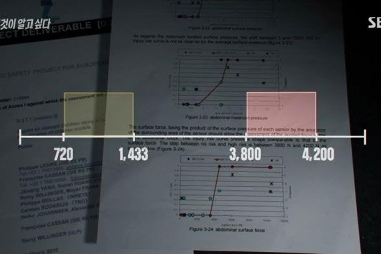 ศาสตราจารย์ด้านวิศวกรรมที่ดูแลการทดลองกล่าวเสริมว่า “ตัวเลขจะสูงขึ้นอย่างเห็นได้ชัดเมื่อหุ่นกระแทกกับกำแพง ซึ่งถือเป็นแรงที่เกิดจากภายนอก 100%” - บอกใบ้ว่าจองอินอาจถูกทารุณในลักษณะเดียวกัน