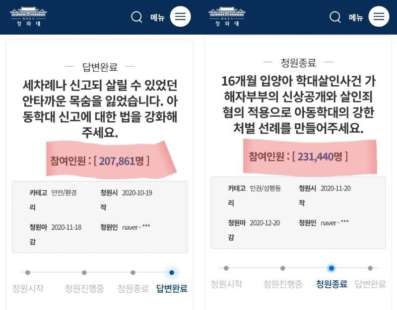 ฉะนั้นนอกเหนือจากการยื่นคำร้องและอุทธรณ์ให้พ่อแม่บุญธรรมของจองอินจางและอันถูกตั้งข้อหาพยายามฆ่าและทารุณกรรมเด็กแล้ว ชาวเกาหลียังเรียกร้องบทลงโทษที่หนักกว่าสำหรับตำรวจด้วยเช่นกัน