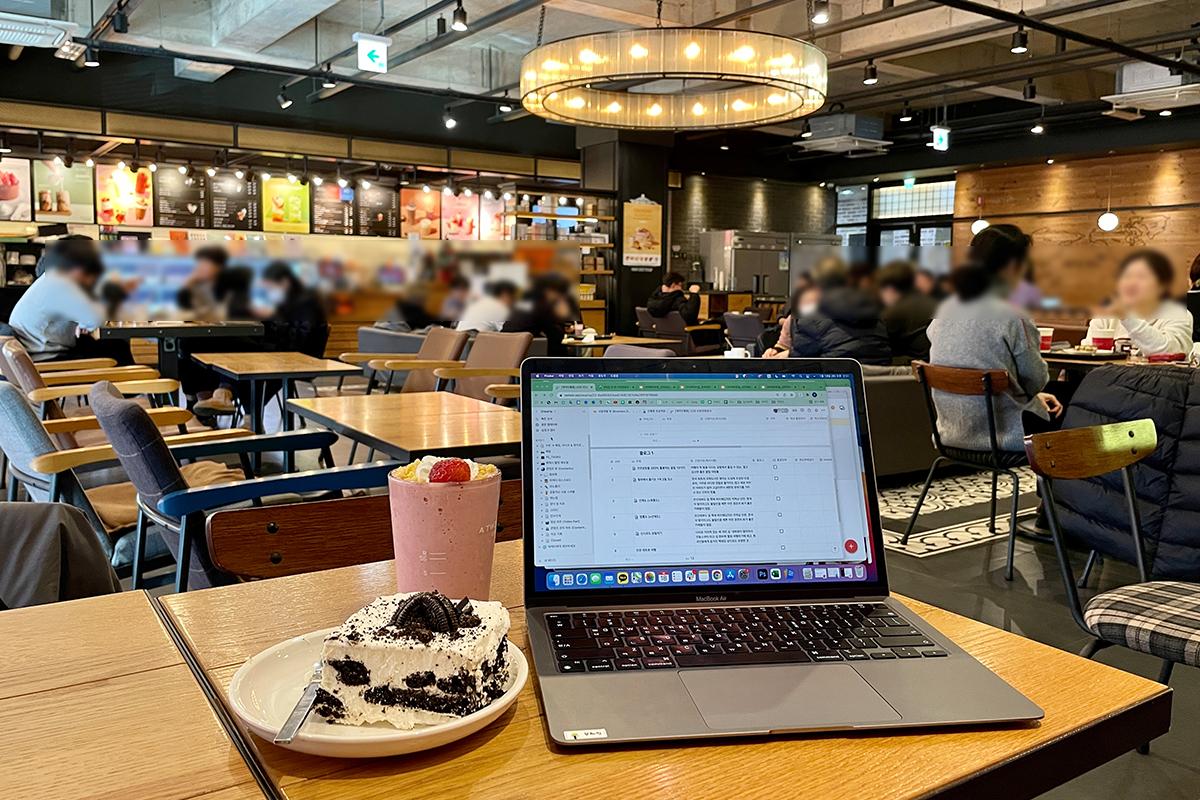 Americano 3,200 won (384 ml), rẻ hơn một chút so với Starbucks 4,500 won (tall, 355 ml). Mình thường đến đây khi tìm một quán cà phê có nhiều chỗ ngồi và wifi tốt.