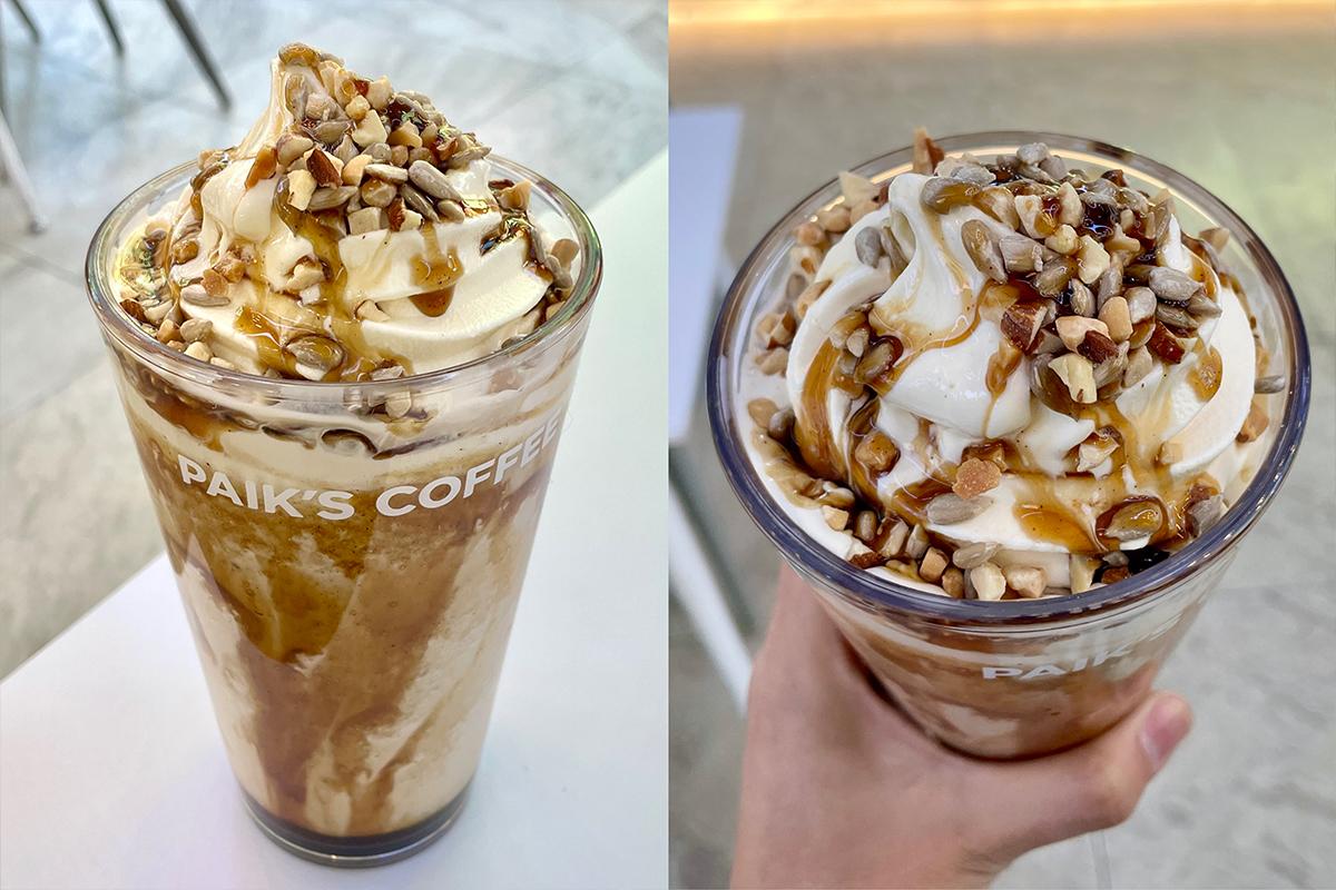 Ngoài ra còn có đồ uống đặc trưng là 'Paik's ccino' (3,000 won), là một loại đồ uống frappuccino điển hình, nhưng có thể thêm kem vani (500 won) và nó rẻ hơn nửa so với Starbucks (6,500 won).