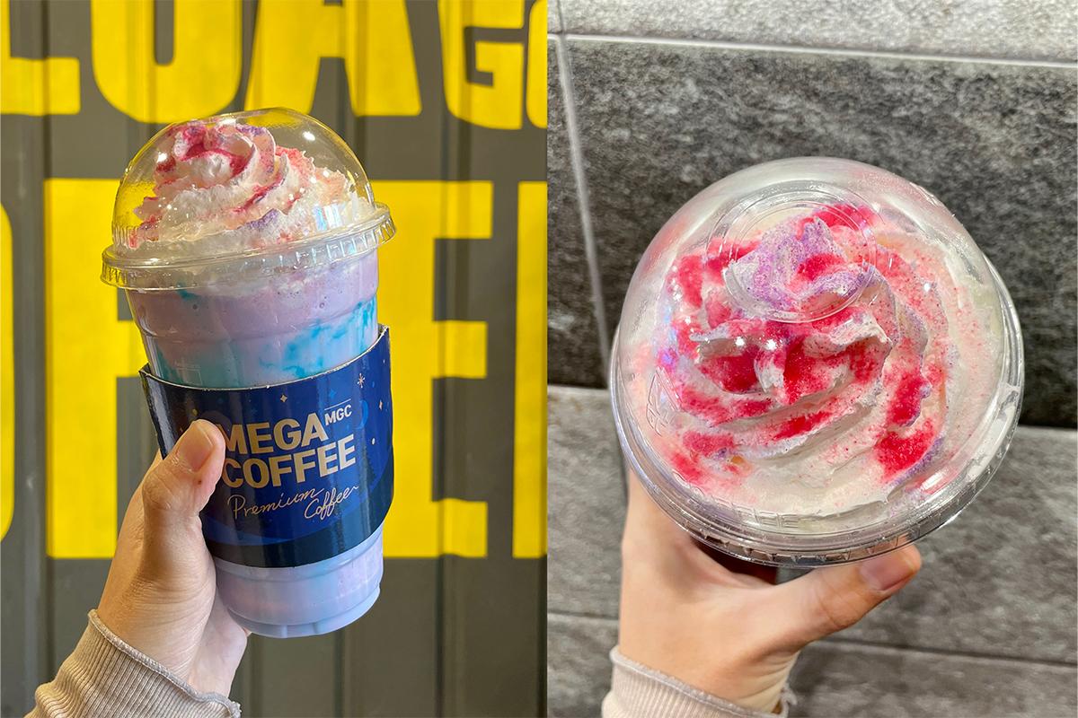 Gần đây, đồ uống mới 'Unicorn Frappe' (4,800 won) của Mega Coffee được check in rất nhiều trên mạng xã hội Hàn Quốc. Đó là một loại sữa lắc thơm ngon được trang trí màu sắc như vũ trụ huyền bí.