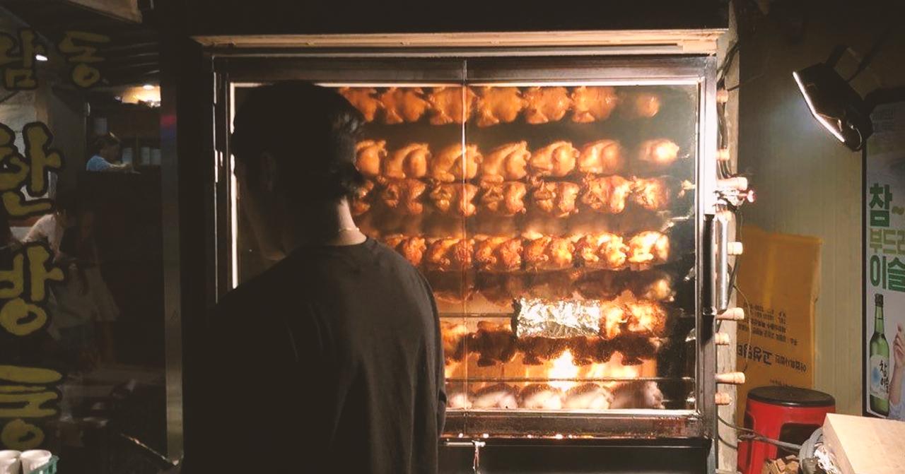 Nhà hàng gà nướng nguyên con truyền thống ở Hannamdong nổi tiếng và đáng giới thiệu nhất. Mình không hề phóng đại tí nào. Khi mình thăm nhà hàng này, mình phải xếp hàng trong mưa. Mình đợi trong khoảng một tiếng để có chỗ ngồi. Bạn có thể tưởng tượng nó nổi tiếng đến mức nào rồi đó! Ông chủ thì luôn luôn bận bịu phục vụ gà nướng.