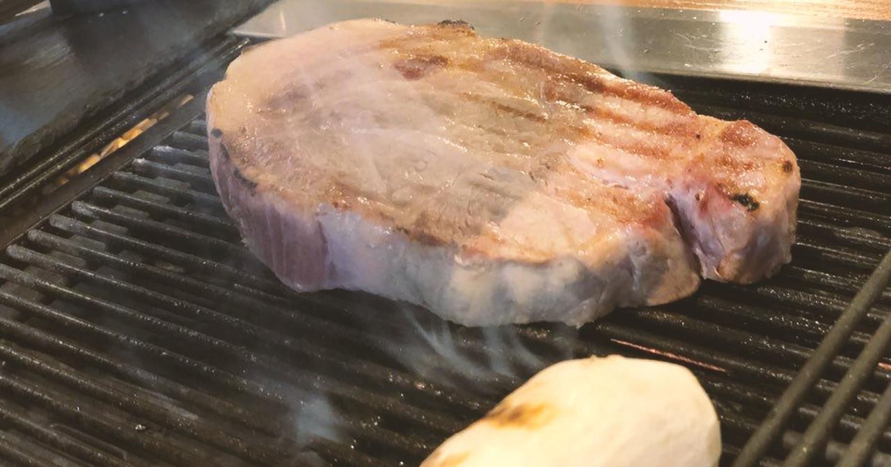 Bàn cắt thịt cho phép khách hàng có thể nhìn thấy quy trình chế biến thịt của nhà hàng. GoGong (고공) không sử dụng thịt đông lạnh trong thời gian dài. Thay vào đó, họ dùng thịt tươi để khách hàng có thể cảm nhận được hương vị đậm đà từ BBQ Hàn. Dù có suất ăn thịt dành cho nhóm hai hoặc ba người, nhưng mình vẫn khuyên các bạn nên gọi ít nhất hai suất cho hai người.
