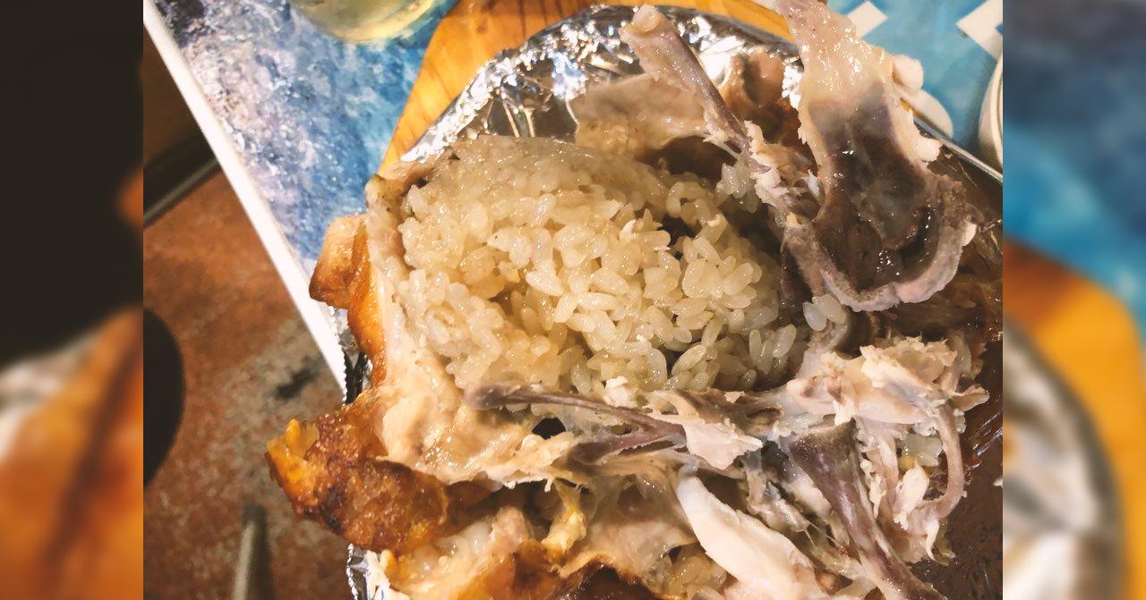 Một con gà nướng nguyên (한방통닭) có giá 18,000 won, không hề rẻ tí nào. Tuy nhiên, nhà hàng này nướng gà dưới hương than trong một thời gian dài, nên gà có vị khói và mọng nước. Bụng gà thì được nhét gạo nếp và các loại thảo dược truyền thống khác của Hàn. Cơm rất hợp với kimchi và mù tạt mật ong.