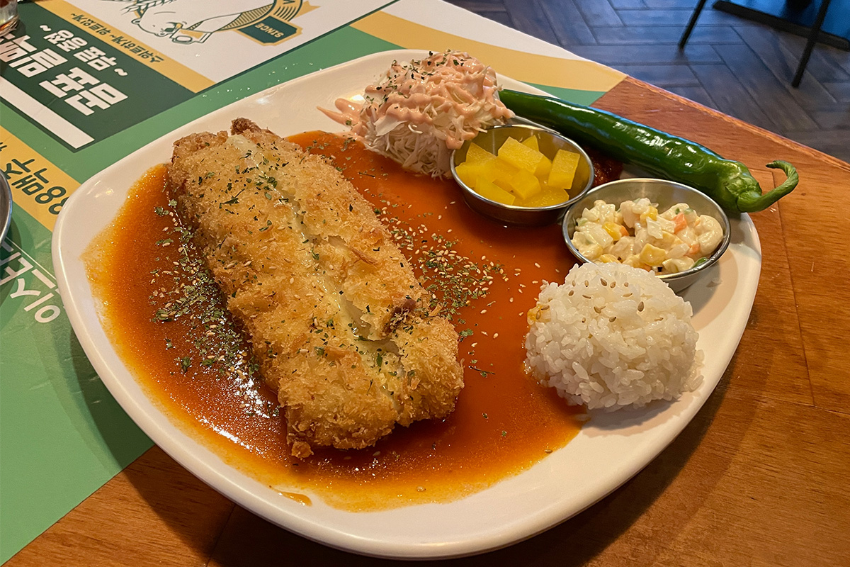 Thịt heo chiên xù phô mai khoai lang (고구마 치즈 돈까스) 11,000 won