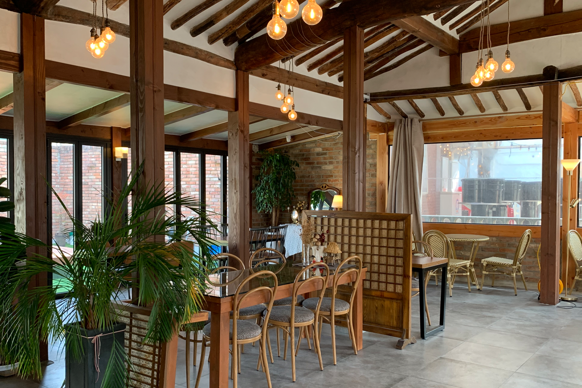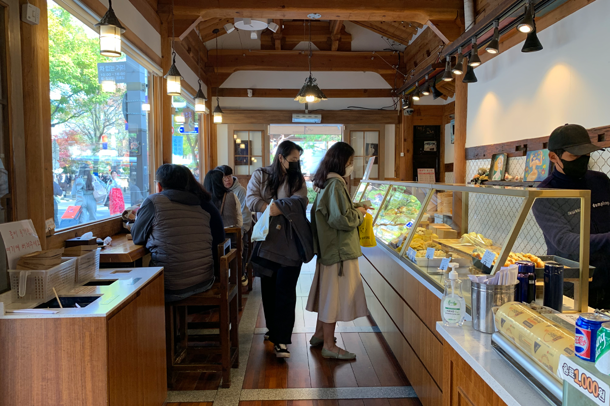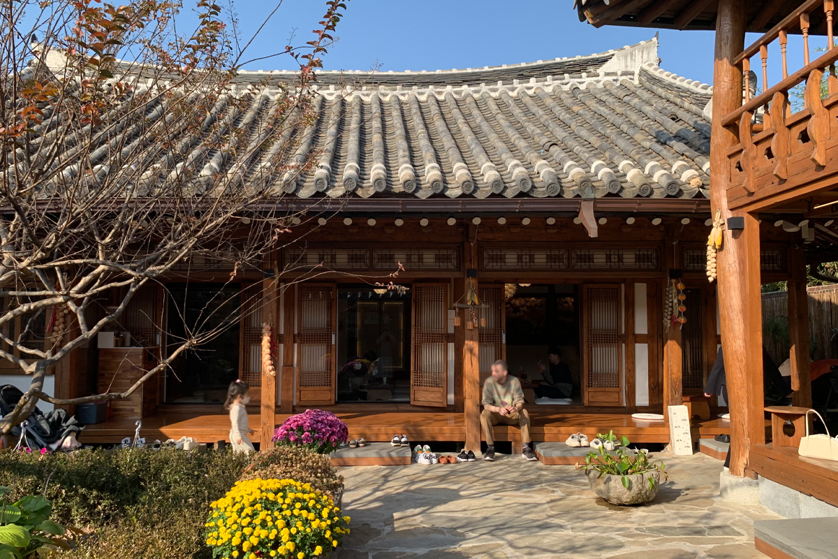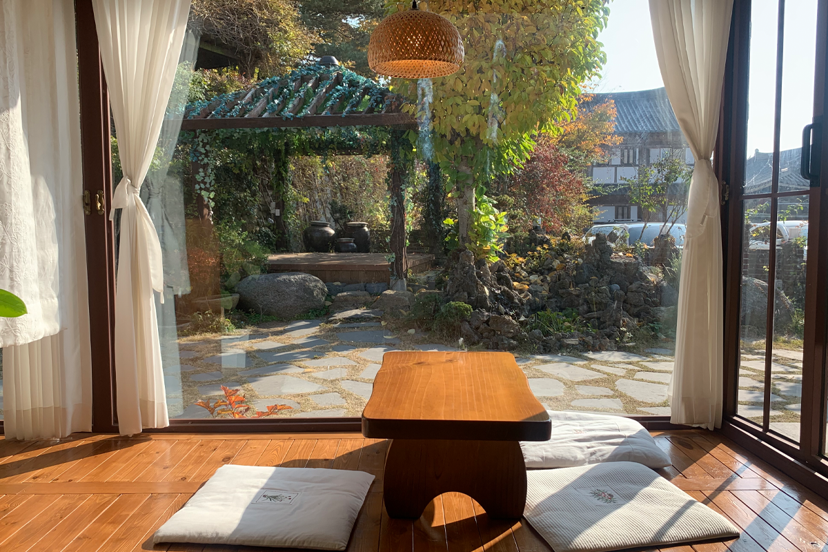 Chính giữa cửa hàng là một khu vườn đầy hoa, mang đậm cảm giác cổ điển truyền thống, khiến bạn có cảm giác như được đưa trở về thời Joseon.