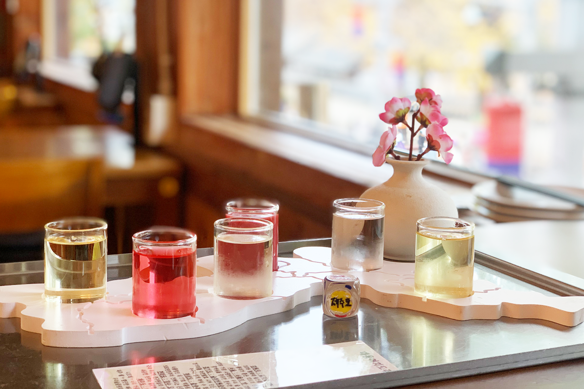 Mình đã gọi thực đơn tiêu biểu của quan là set Jeonju bao gồm bánh xèo thịt lợn, rượu bản đồ và thạch hạt dẻ lạnh, trông rất phong phú.
