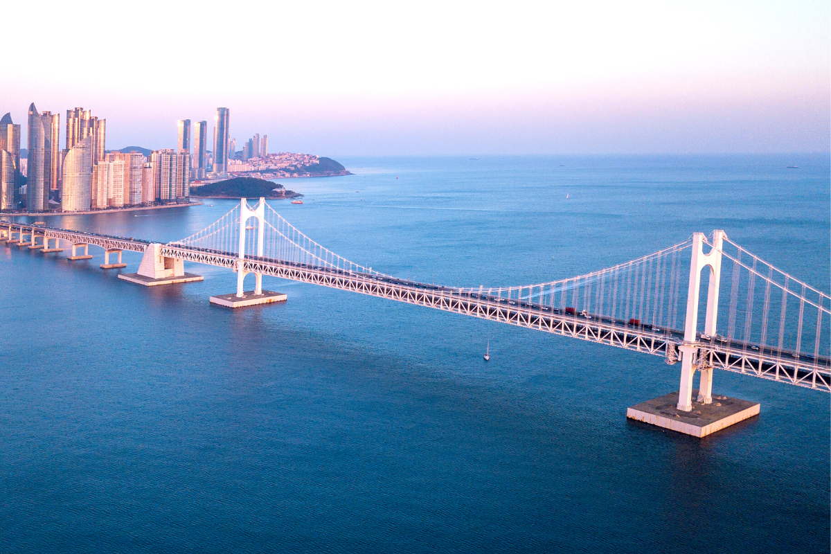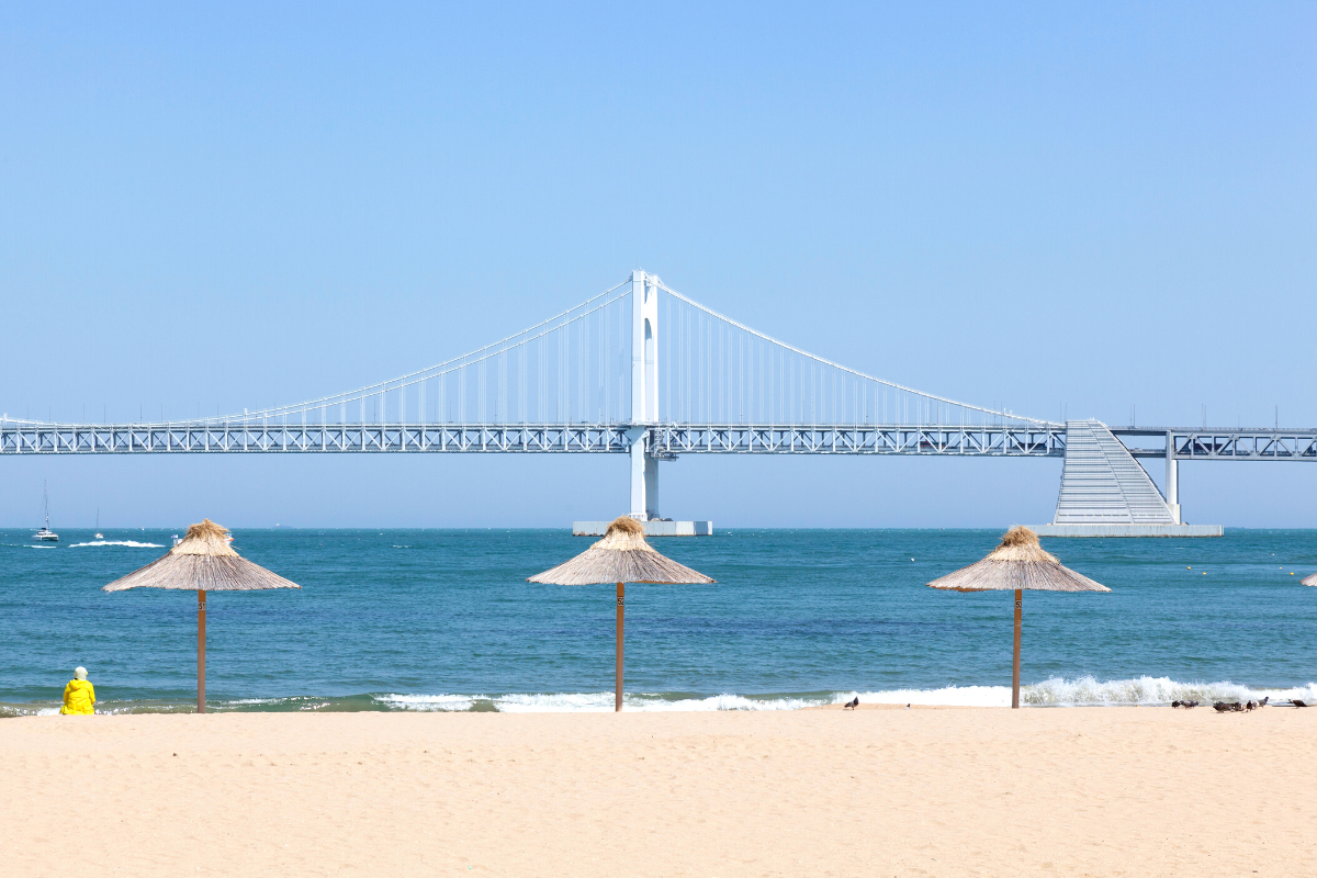 Từ bãi biển Gwangalli bạn có thể chiêm ngưỡng vẻ đẹp của cầu Gwangan, cầu treo dài nhất Hàn Quốc, cũng là một trong những biểu tượng của thành phố Busan.