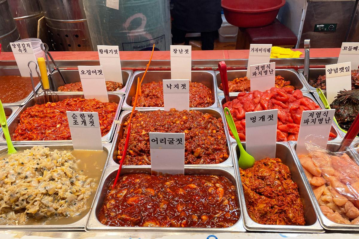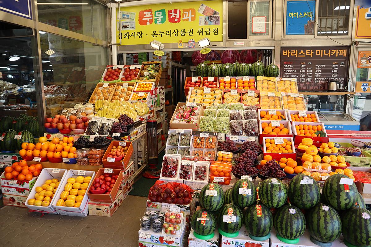 Chợ truyền thống Ganghwa Pungmul bán các đặc sản của Ganghwado và các nguyên liệu thực phẩm khác nhau.