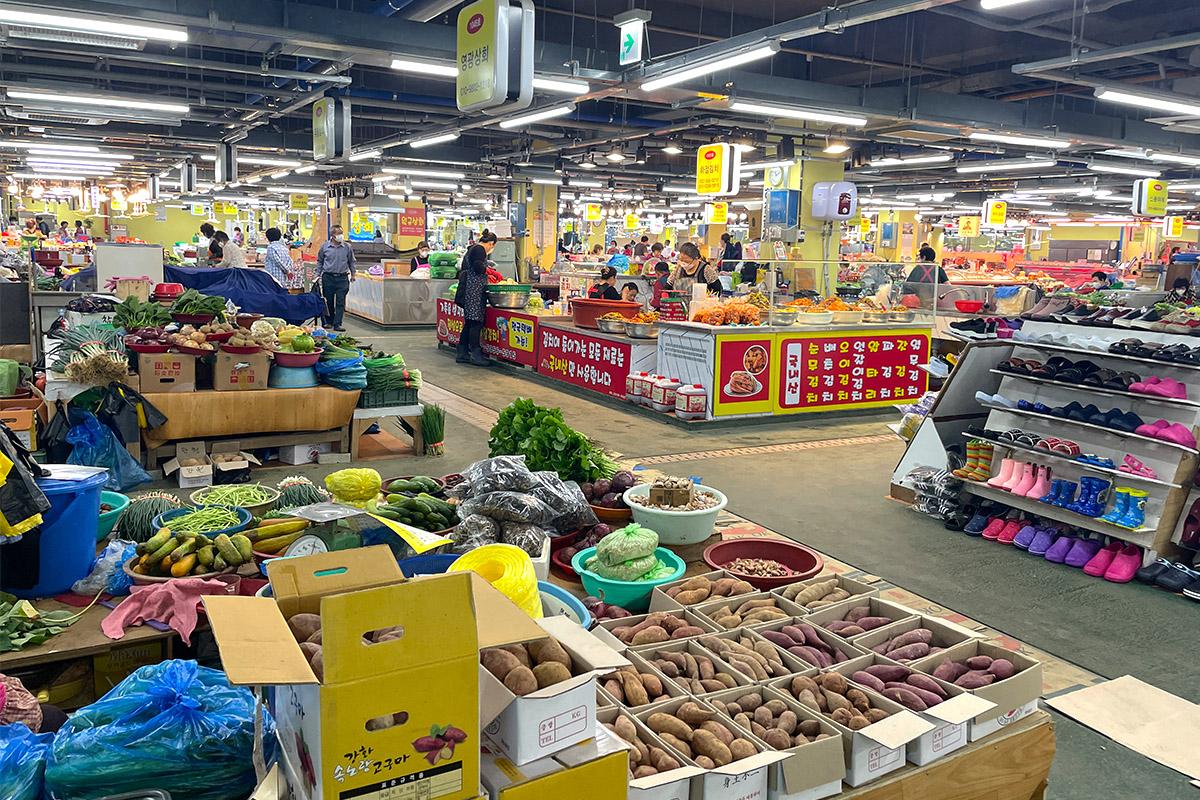 Bạn có thể mua nhiều loại nguyên liệu và đặc sản địa phương như cá, khoai tây, gạo, củ cải,... và là nơi bạn có thể cảm nhận được bầu không khí độc đáo của chợ Incheon.