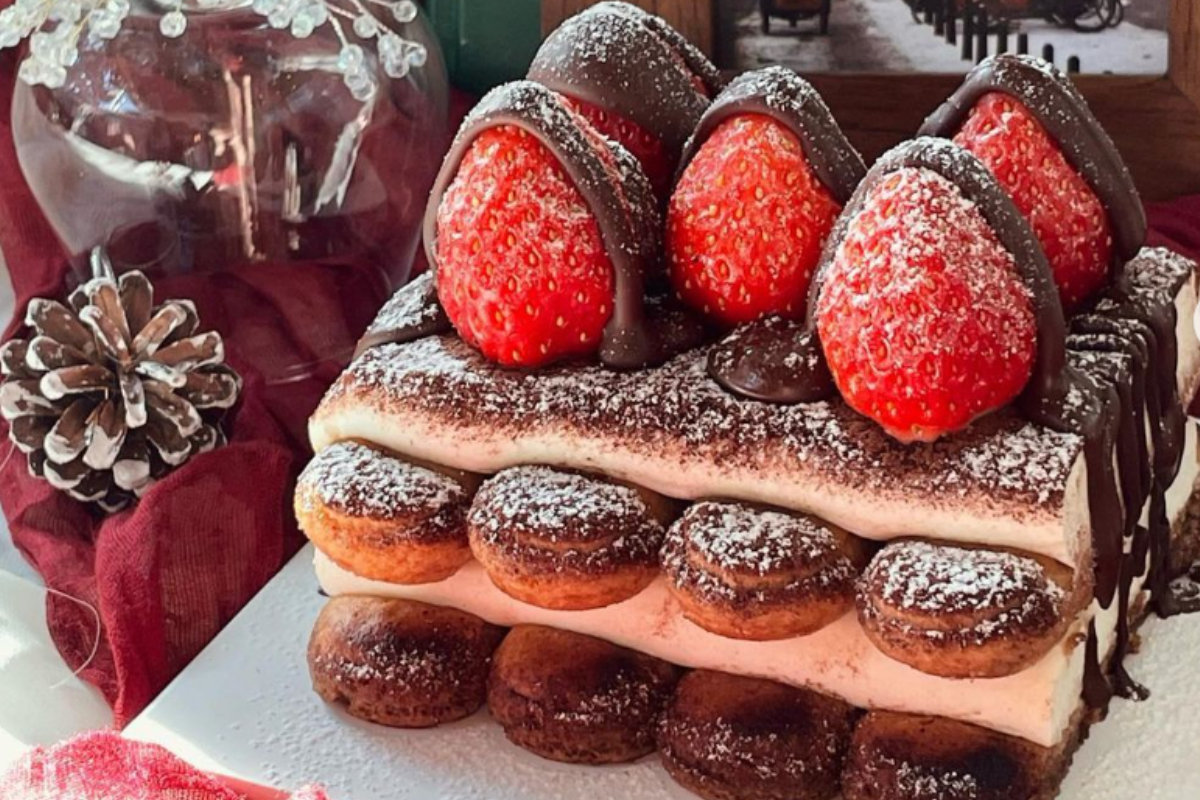 Thực đơn tiêu biểu của quán là bánh Chocolate Tiramisu 9,500 won được trang trí bằng những trái dâu tây tươi đỏ mọng, nhìn visual thực sự rất hấp dẫn, đó là lý do vì sao mà quán lại đông bạn trẻ tìm đến như vậy.