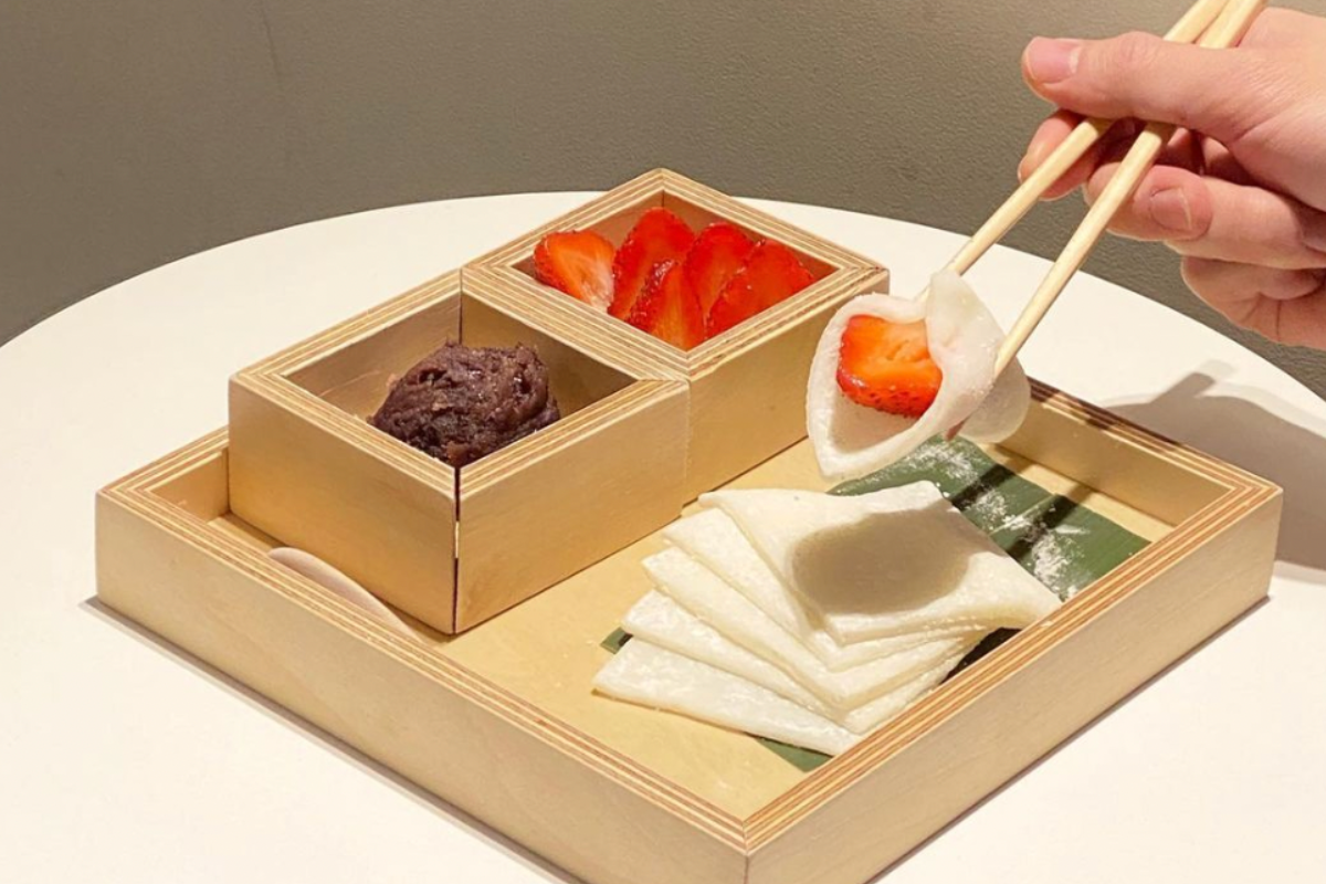Mỗi mùa đông đến, thực đơn Mochi dâu tây 9,000 won của Tenu Coffee lại nổi dần dần trên mạng xã hội. Quán phục vụ món mochi trên khay chia thành vỏ bánh mochi, dâu tây và đậu đỏ. Bạn sẽ tự làm và ăn bánh mochi dâu tây theo ý muốn của mình. Trông nó rất Nhật mà cũng rất Hàn, mang đến cảm giác rất thư thái.
