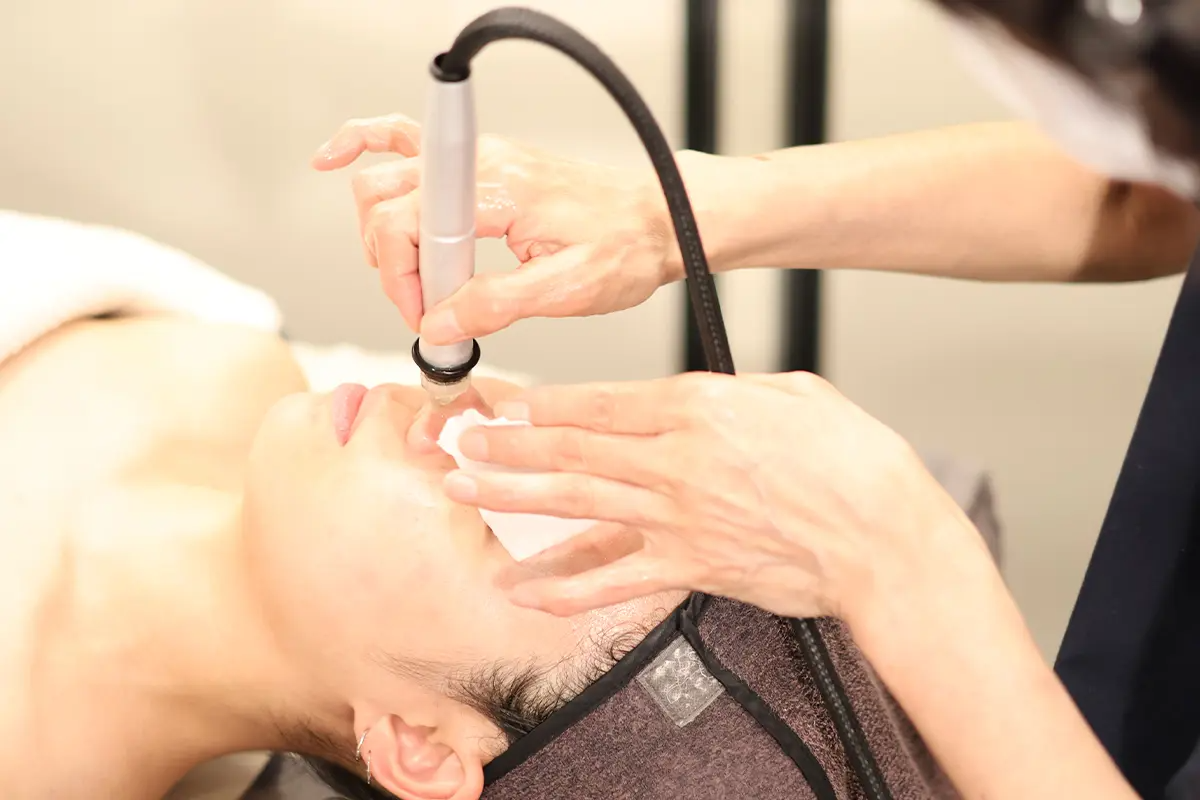 Tiếp theo, ampoule được thẩm thấu sâu vào lỗ chân lông bằng thiết bị siêu âm.