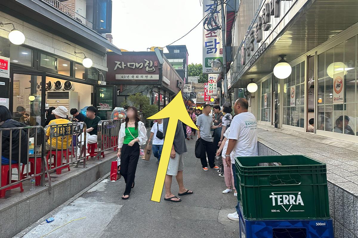 Vui lòng tiếp tục đi thẳng. Myeongdong Dakhanmari Geoseong Branch nằm ở bên phải của bạn.