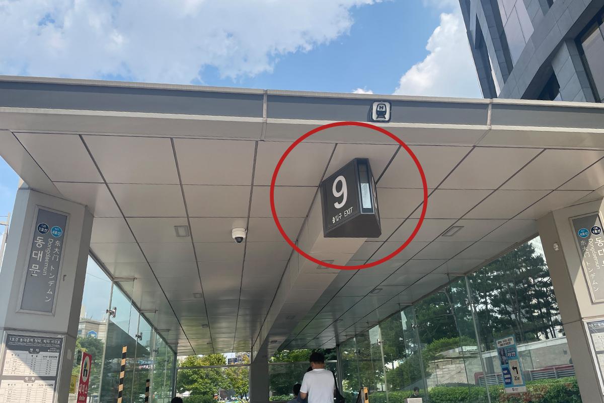 Rời khỏi Cổng số 9 của ga tàu điện ngầm Dongdaemun.