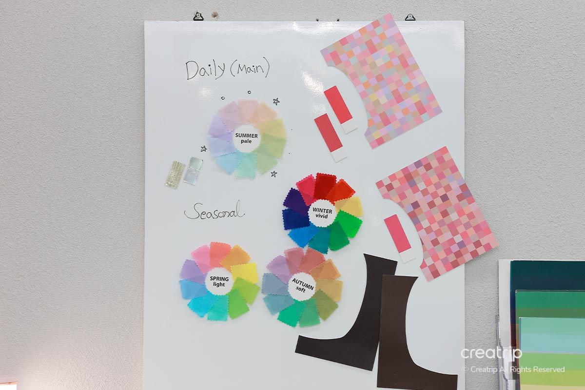 Ngoài việc giải thích bằng lời, họ cung cấp một bảng màu chi tiết mà bạn có thể mang theo và tham khảo khi mua sắm quần áo hoặc mỹ phẩm!