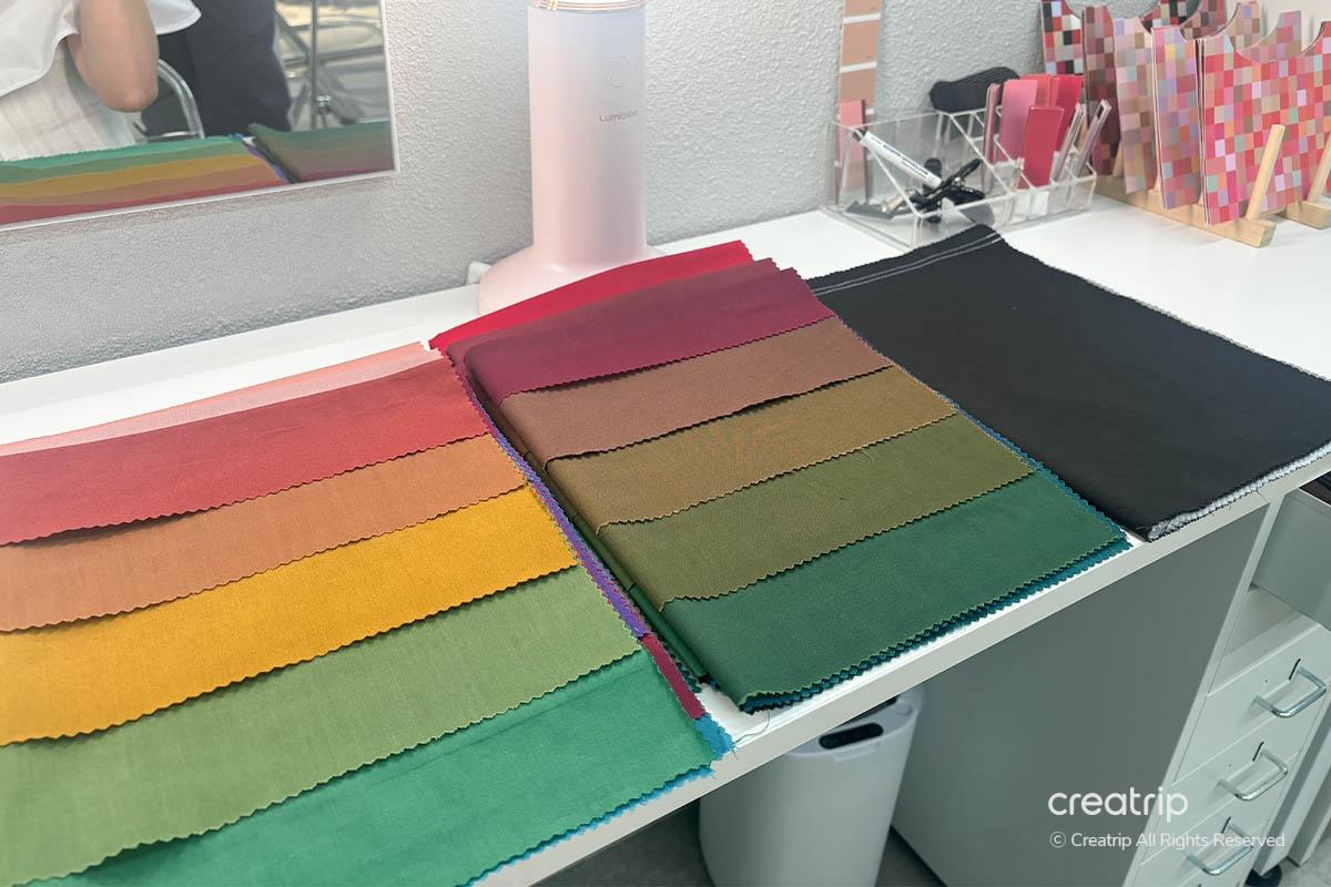 Chúng tôi đã thử trên nhiều loại vải có màu sắc khác nhau trong khi xem gương trước mặt. Cô ấy nhanh chóng và chính xác xác định màu nào phù hợp nhất. Tôi cảm nhận được sự thành thạo từ cách cô ấy nhanh chóng kiểm tra mọi thứ.