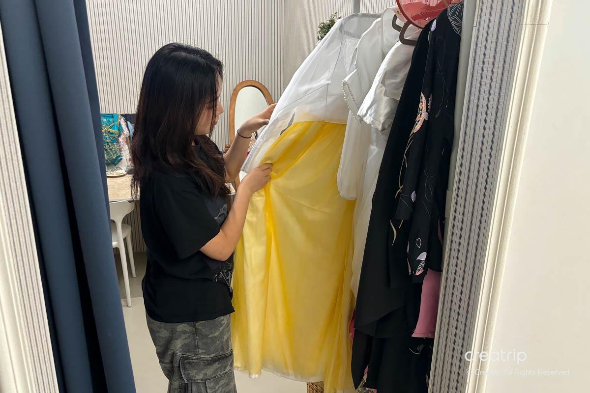 Bên cạnh phòng thay đồ, có một khu vực chờ nơi bạn có thể chọn hoặc thay đổi trang phục của mình. Có những bộ trang phục dễ thương và độc đáo được chuẩn bị, nên rất thú vị để tham quan.