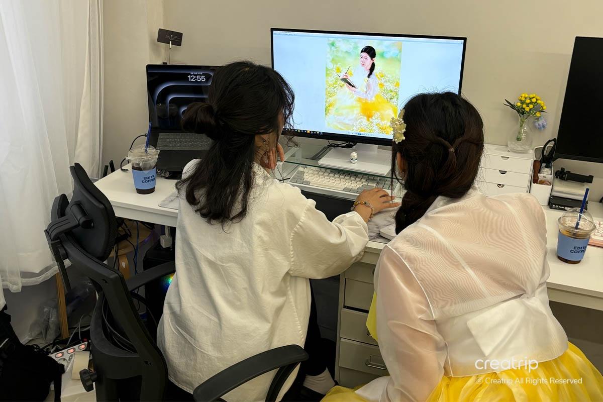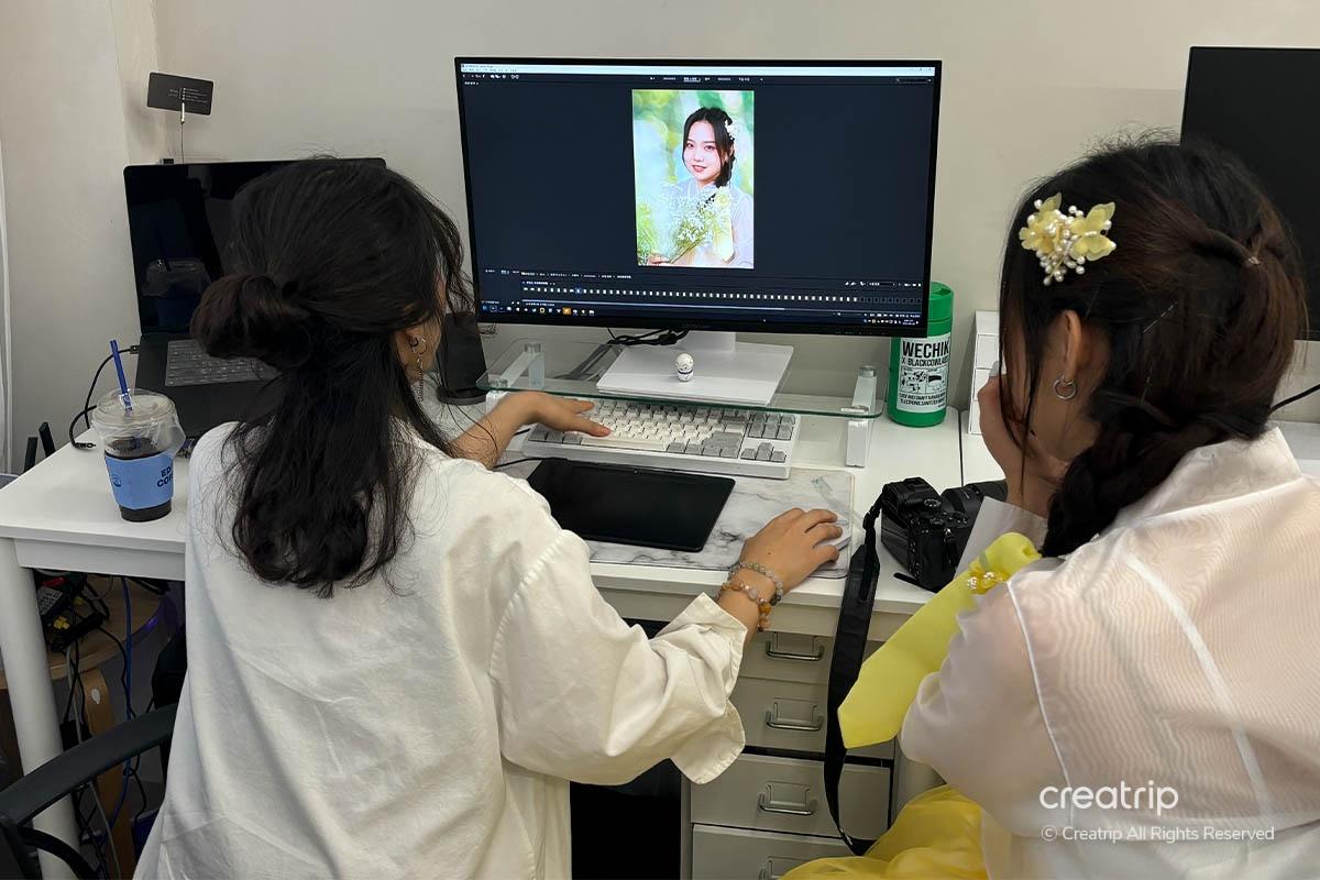 Một ảnh sẽ được chỉnh sửa ngay lập tức; 3 ảnh được chỉnh sửa còn lại và ảnh khung ý tưởng (JPG) sẽ được gửi qua email hoặc qua KakaoTalk trong vòng 7 ngày.