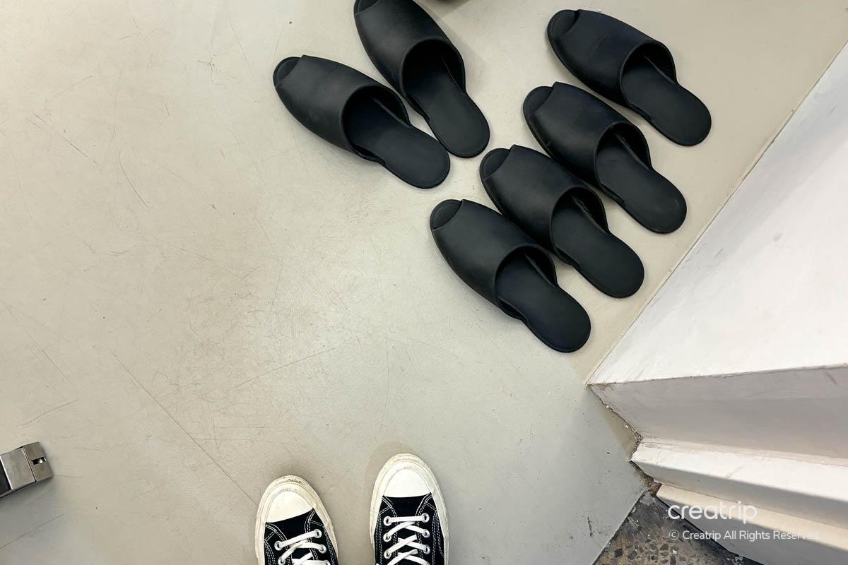 Tôi đã đến studio và thay giày trong nhà thoải mái.