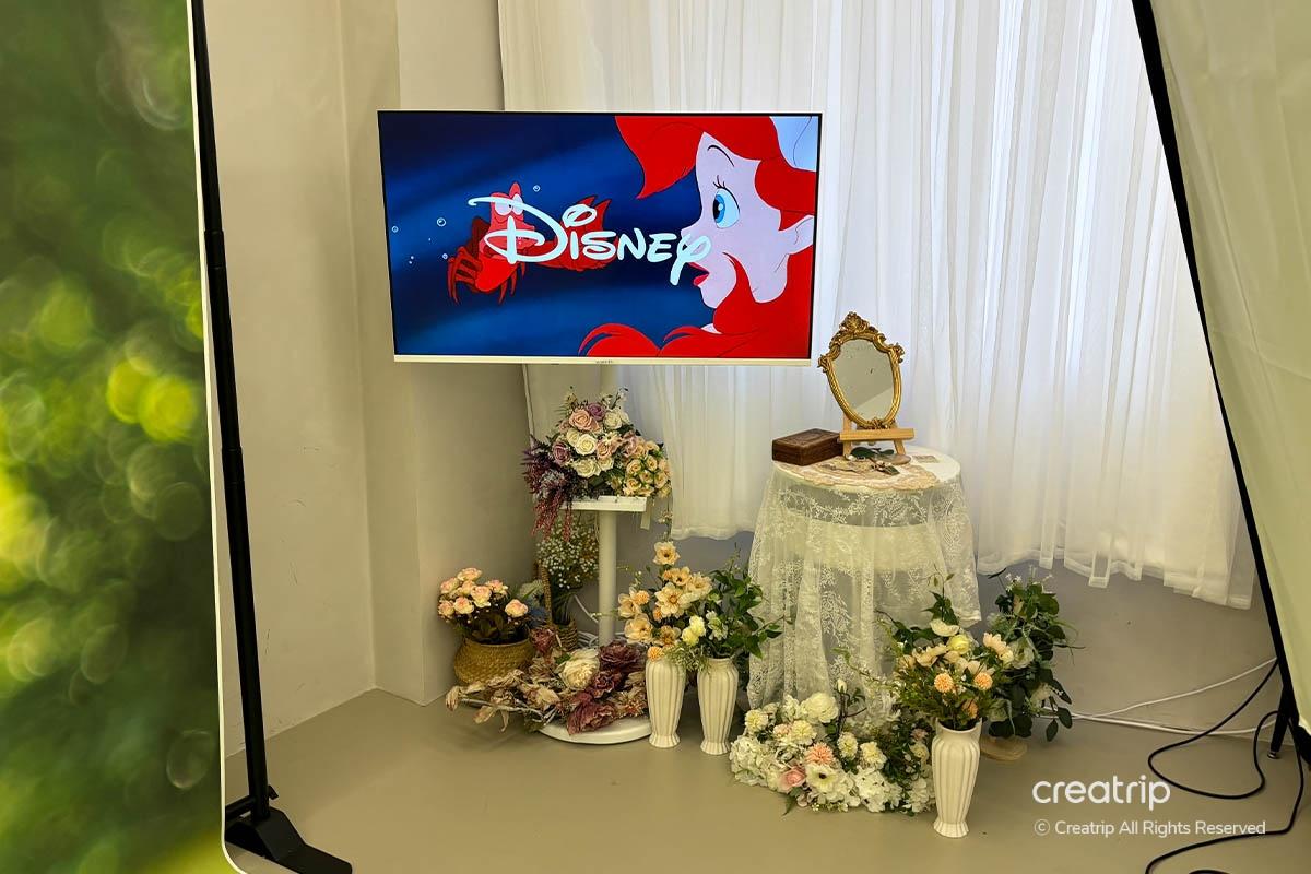 Nhạc Disney đang phát trên phim trường, giúp giảm bớt căng thẳng trước khi quay phim.