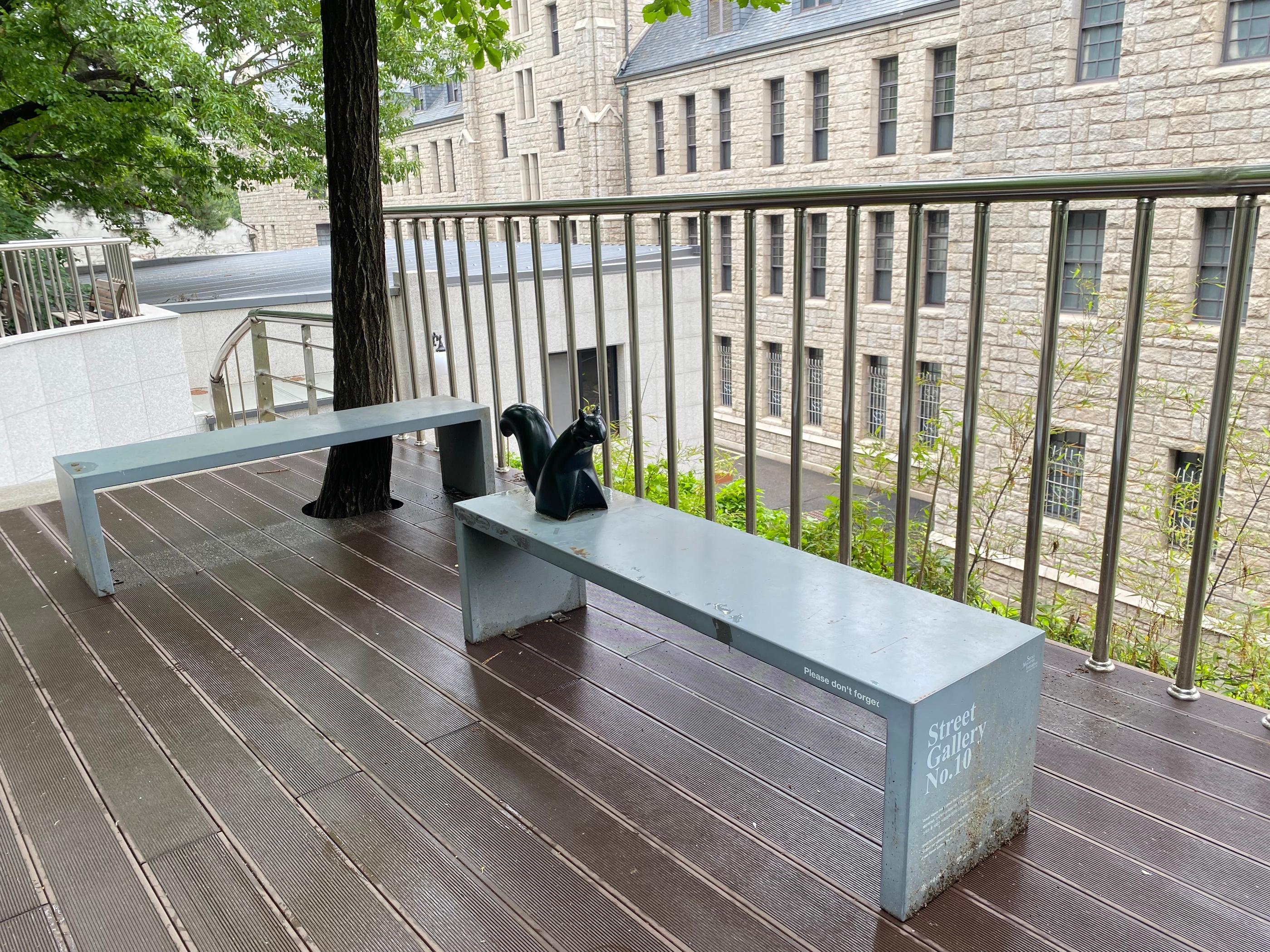 Phía trước Thư viện Khoa học, có một vật thể với 'KU,' biểu tượng của Korea University.