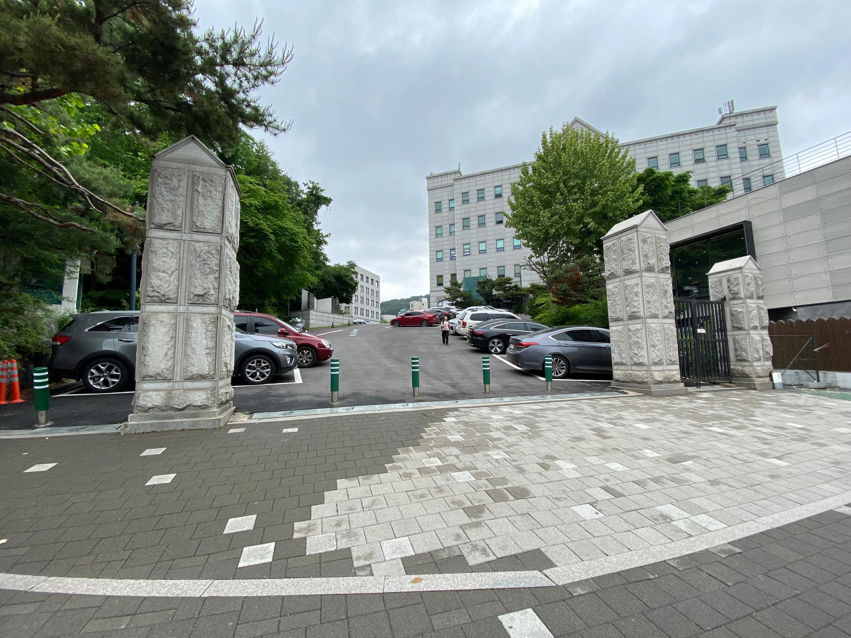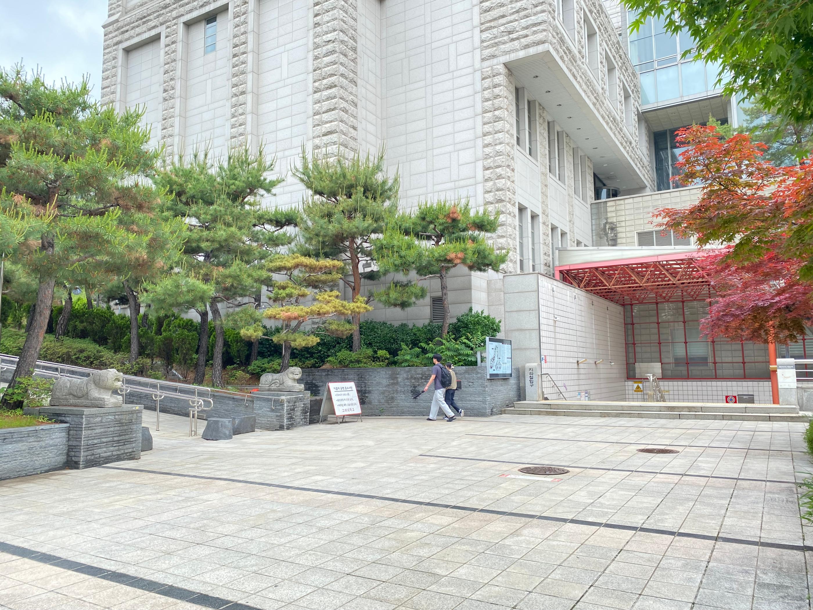 Tòa nhà có thể nhìn thấy ở phía sau là Viện Ngôn ngữ Hàn Quốc, Trung tâm Ngôn ngữ Hàn Quốc Korea University