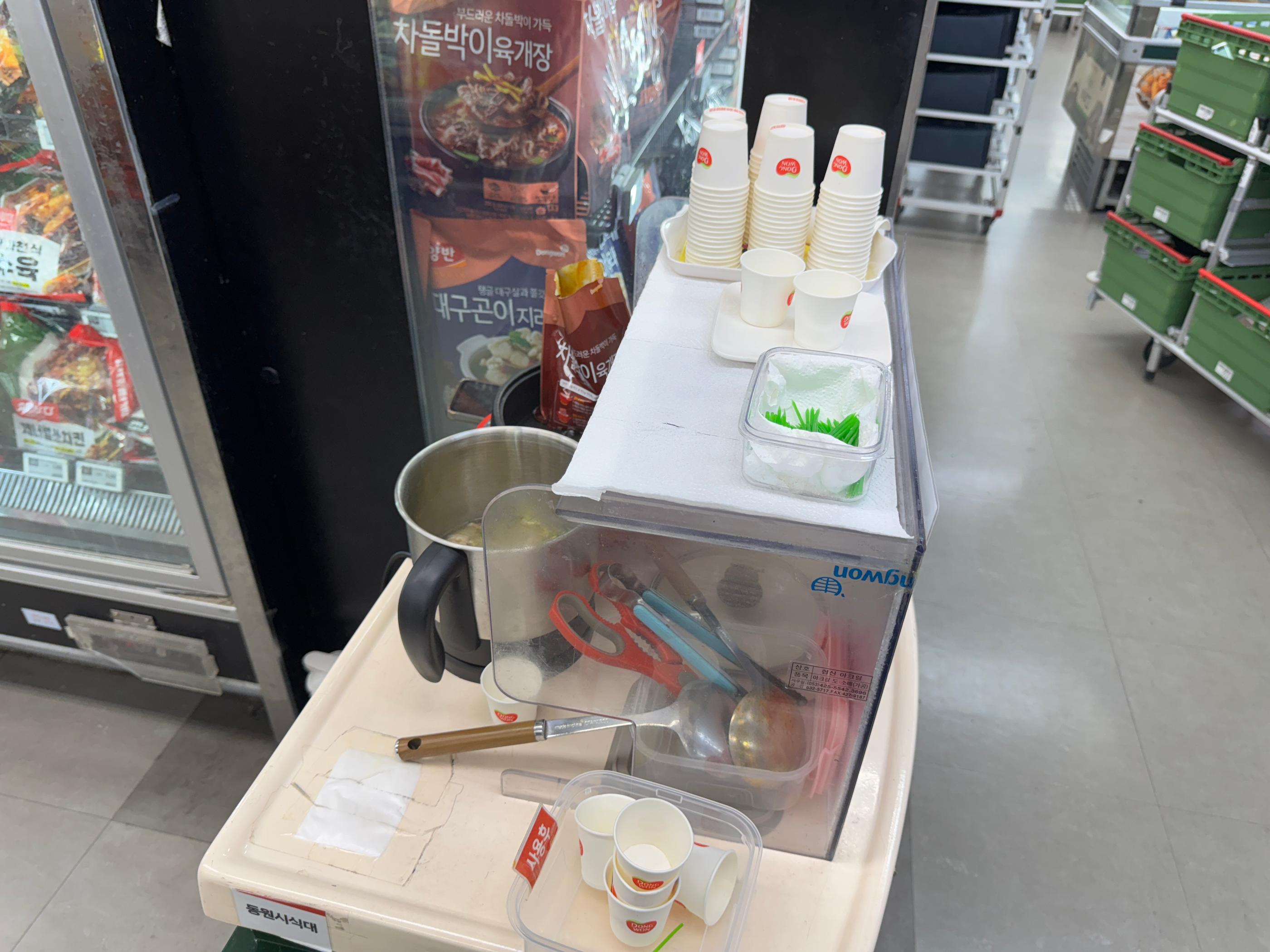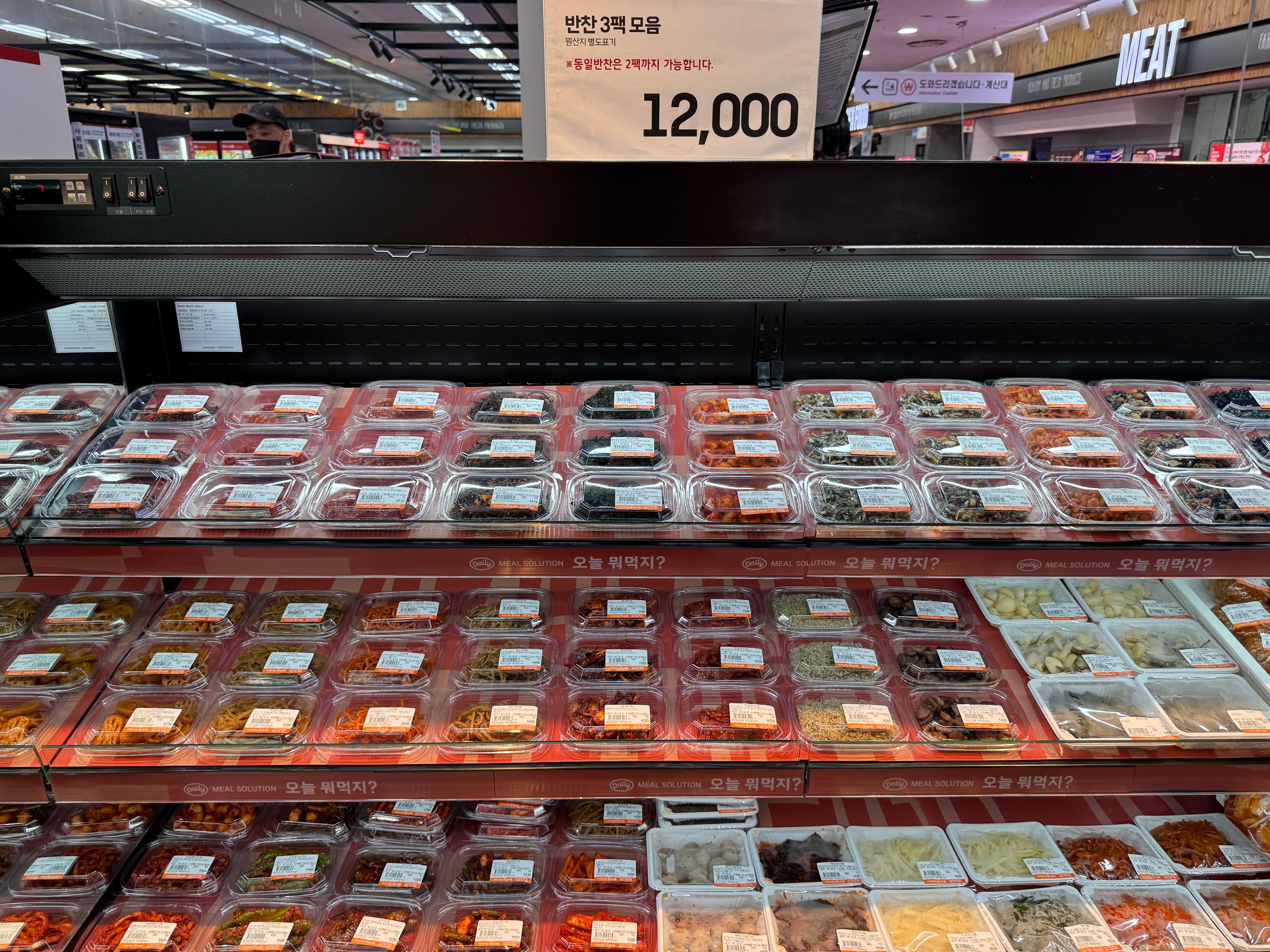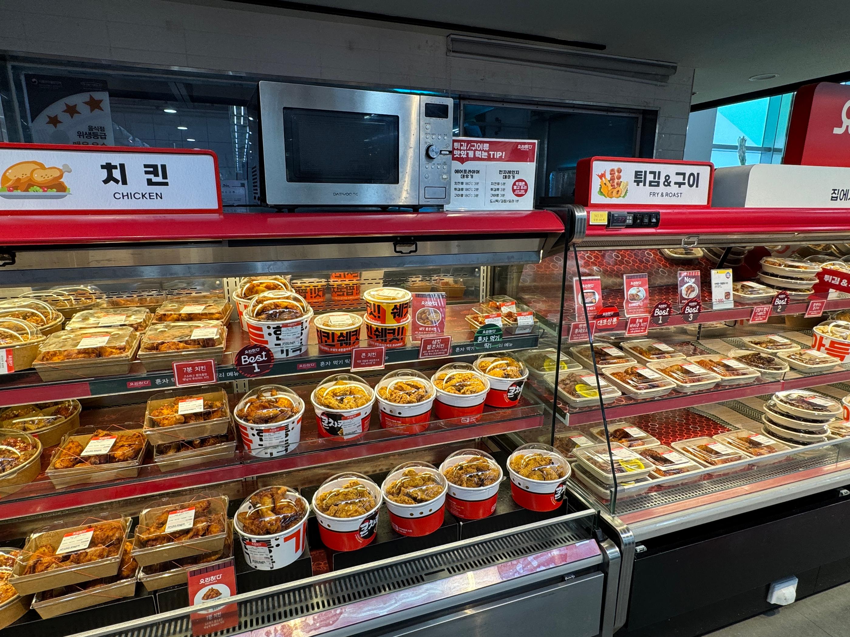 Cũng có một khu vực gà rán sẵn sàng lấy và nhiều món ăn kèm Hàn Quốc, tất cả đều với phần nhỏ—hoàn hảo để thử một chút mọi thứ khi bạn trở về chỗ ở của mình.