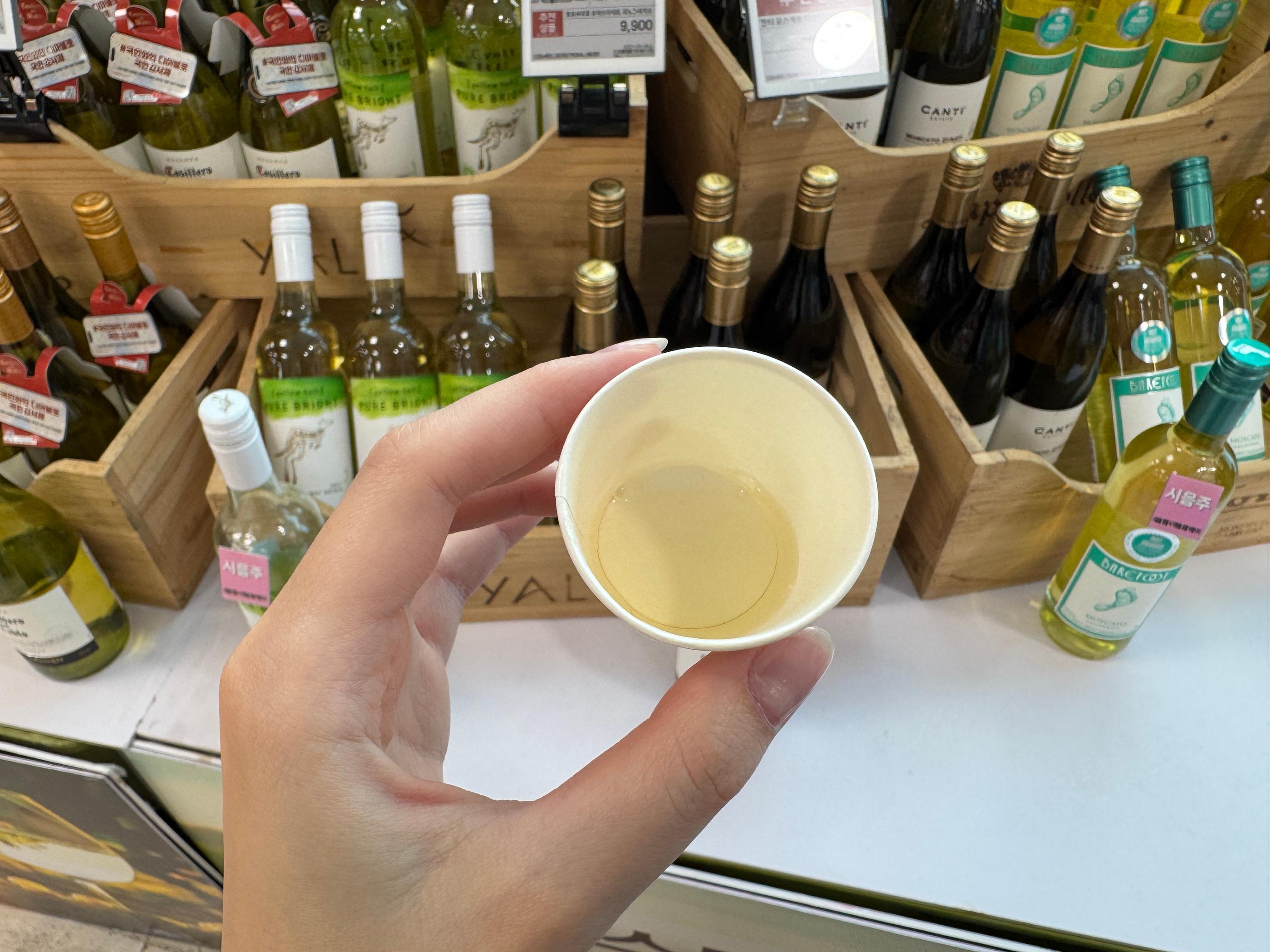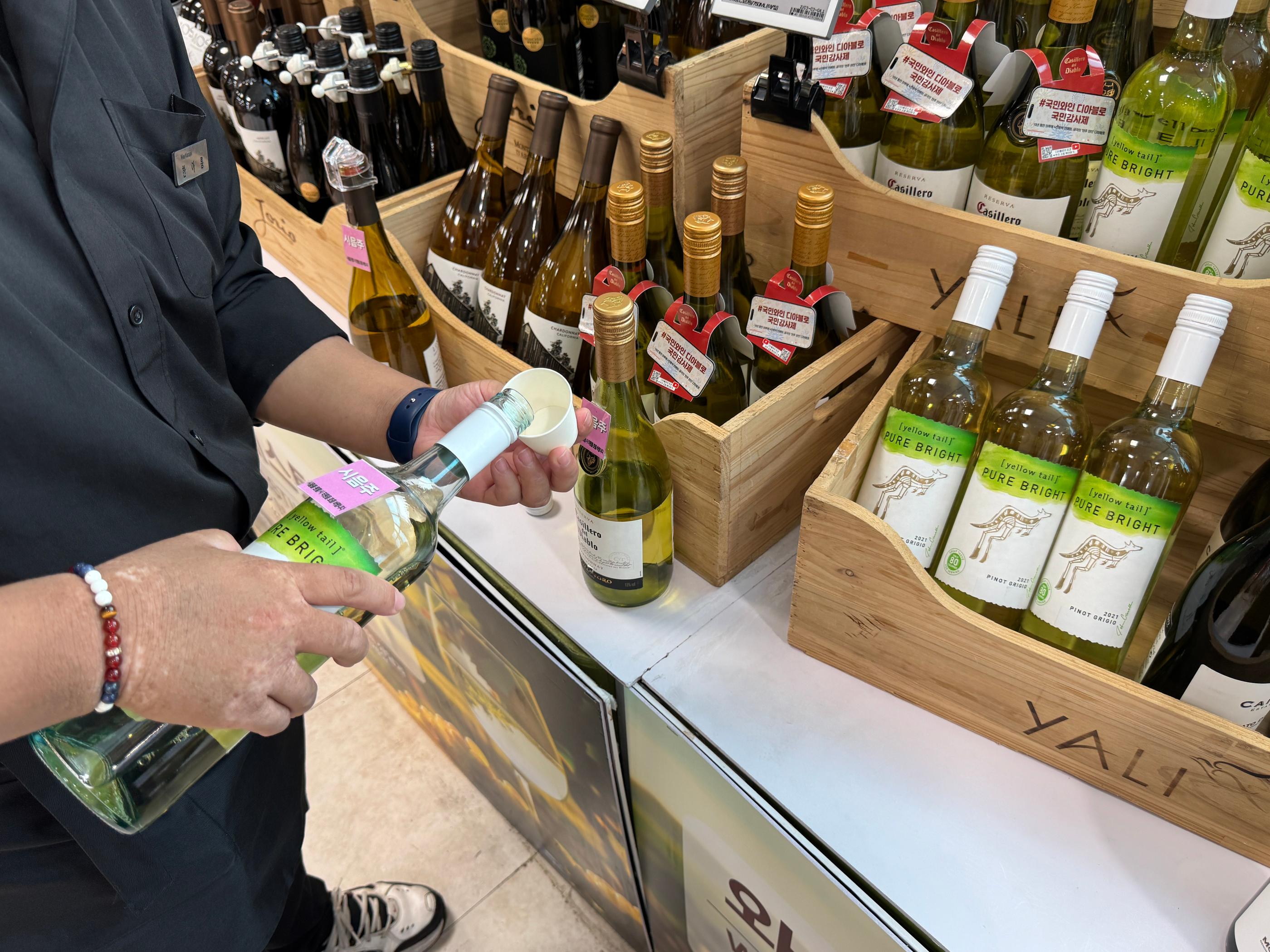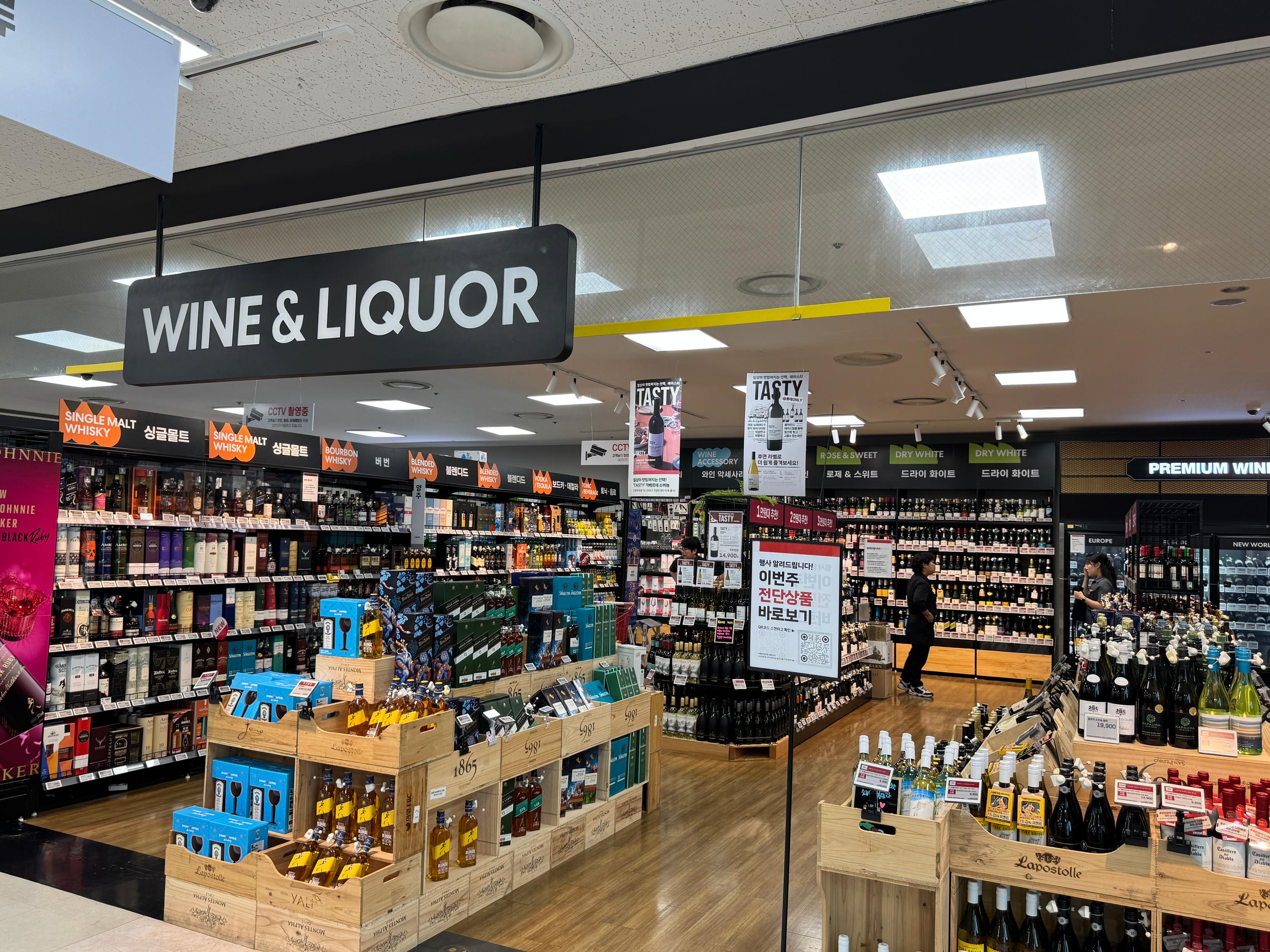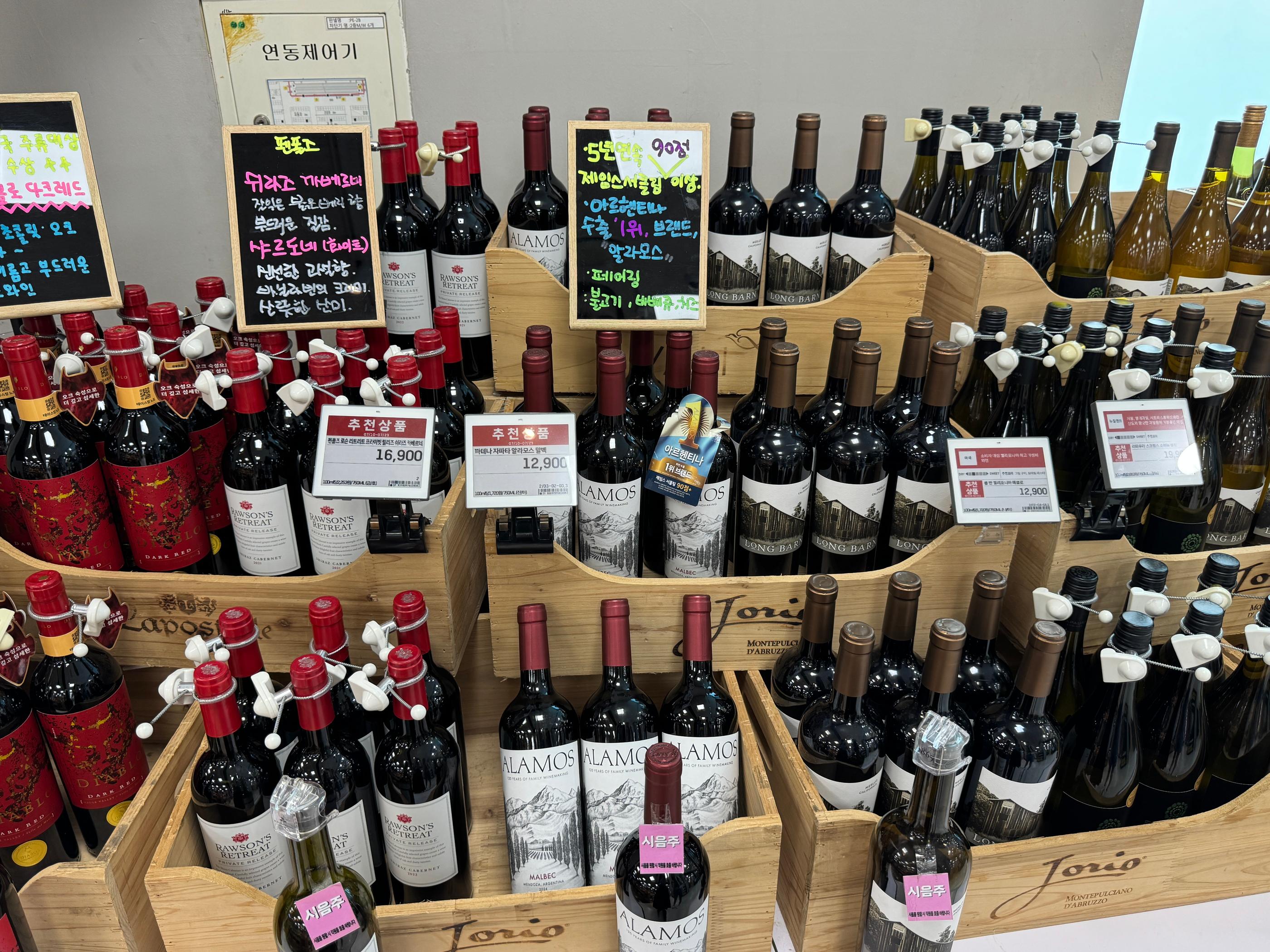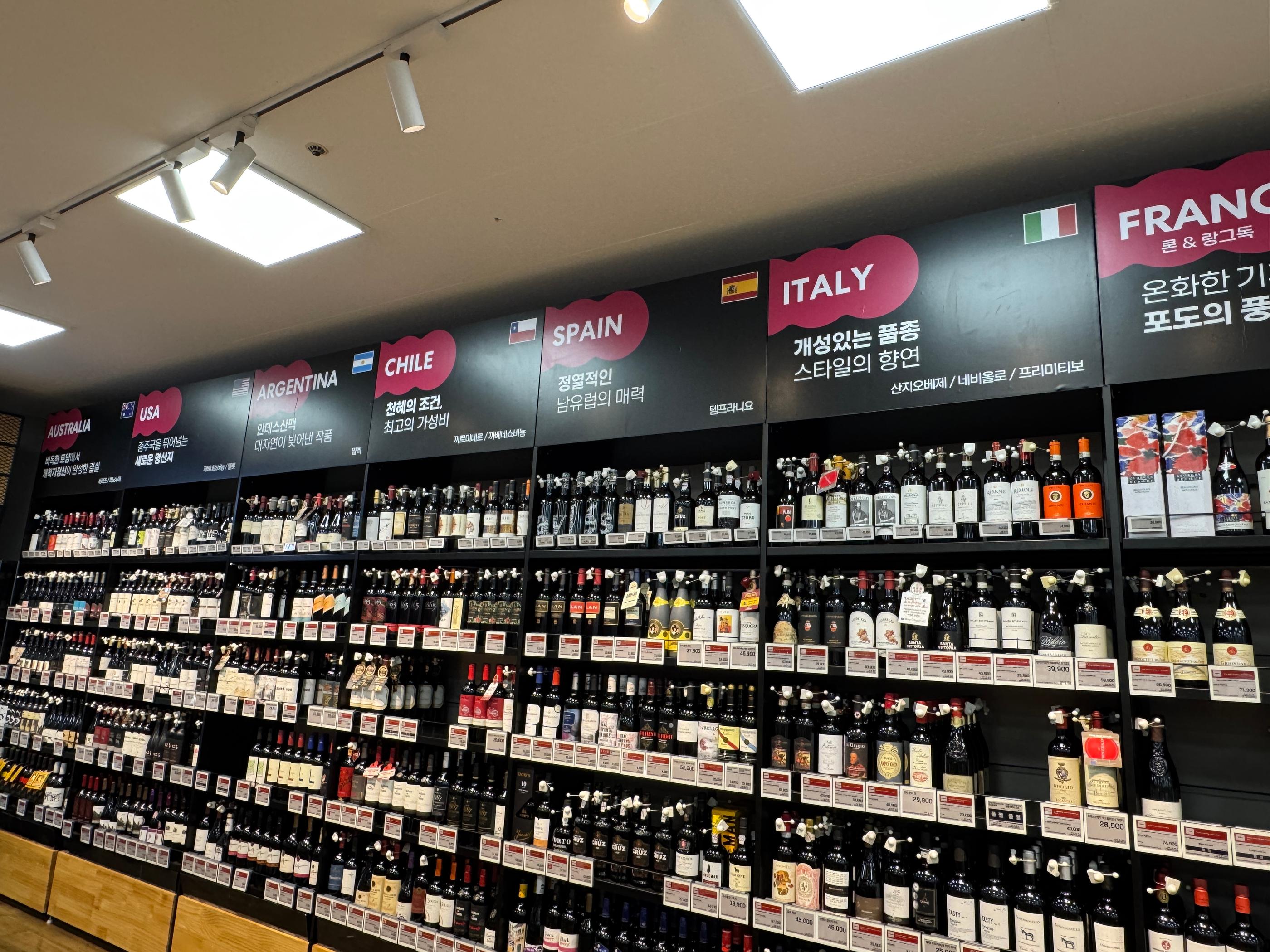 Khu rượu vang ở tầng hai rất lớn, với nhiều loại đa dạng từ các quốc gia khác nhau, tất cả đều được ghi rõ mức độ ngọt và khô—bạn cũng có thể hỏi nhân viên để thử miễn phí và tìm ra loại mình yêu thích!