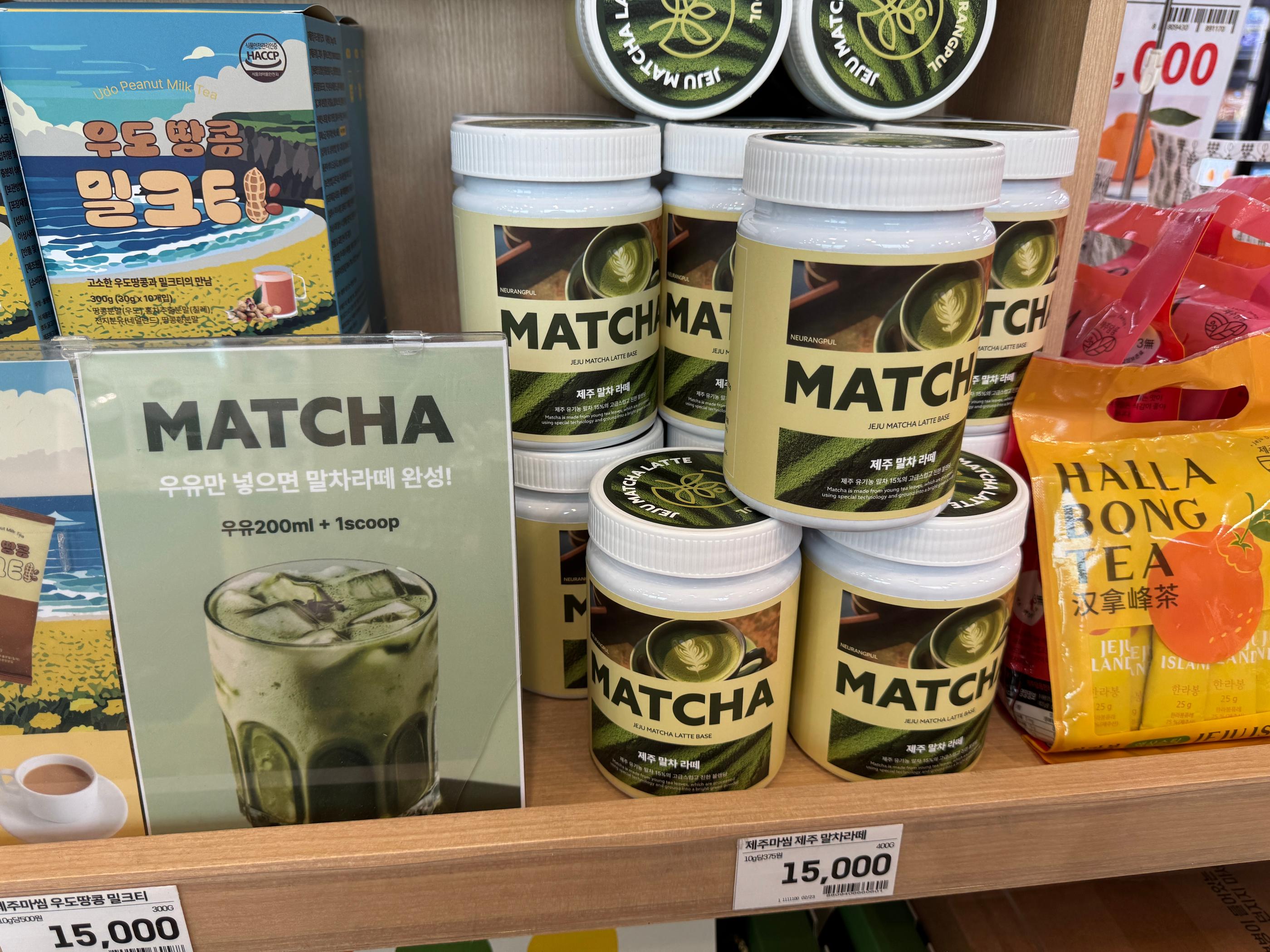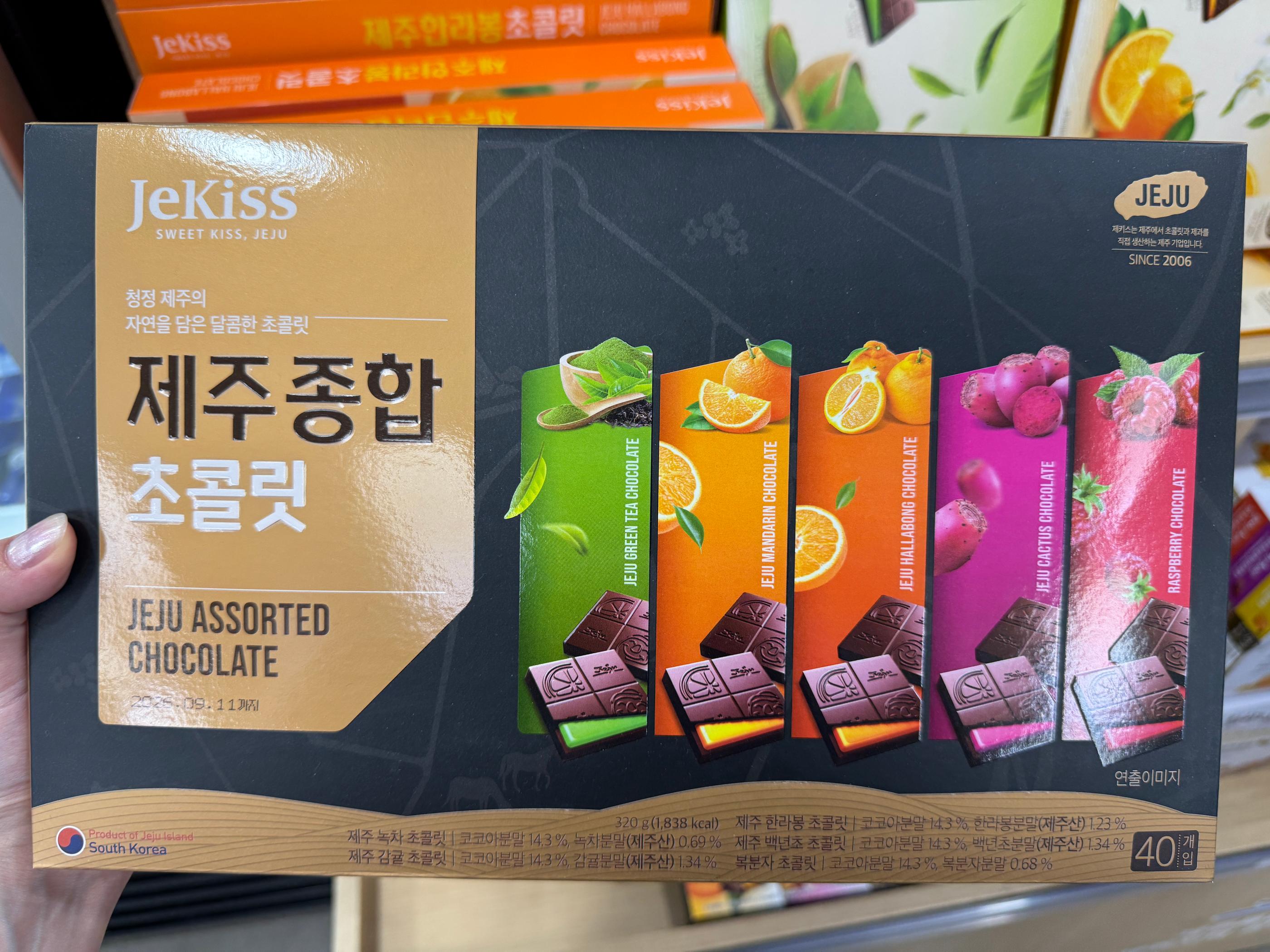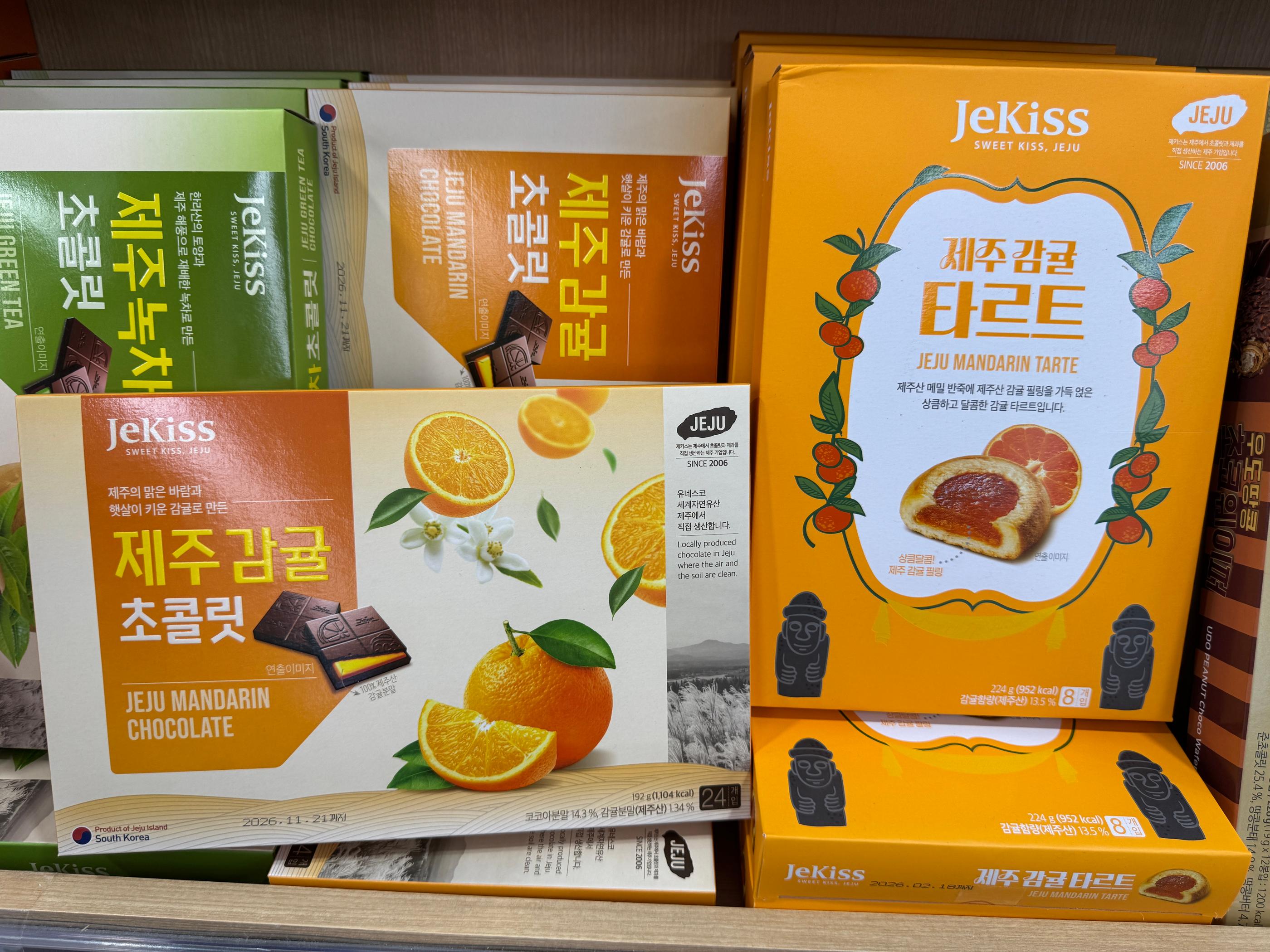 Bạn sẽ tìm thấy các loại socola Jeju đậm đà được làm từ nguyên liệu địa phương, rượu makgeolli truyền thống được ủ trên đảo, và nhiều loại đồ ăn nhẹ độc đáo thể hiện hương vị của Jeju. Thậm chí còn có một gói matcha Jeju lớn rất thích hợp để làm quà tặng hoặc đơn giản là tự thưởng cho bản thân như một món quà đặc biệt.