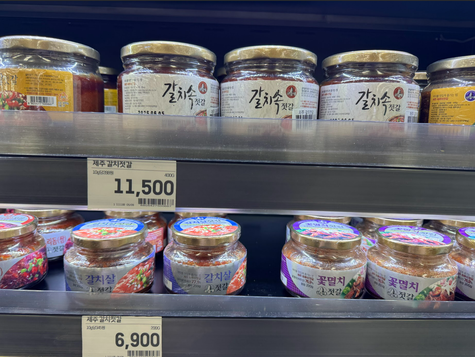 Một góc khác bạn nên khám phá là khu Đặc Sản Sạch Jeju , nơi cung cấp nhiều loại hải sản tươi sống từ Jeju, bao gồm các món đặc sản ướp và lên men như 젓갈 (hải sản muối và lên men kiểu Hàn Quốc), cùng với các loại rượu địa phương và những sản phẩm đặc biệt khác làm nổi bật hương vị độc đáo của hòn đảo.
