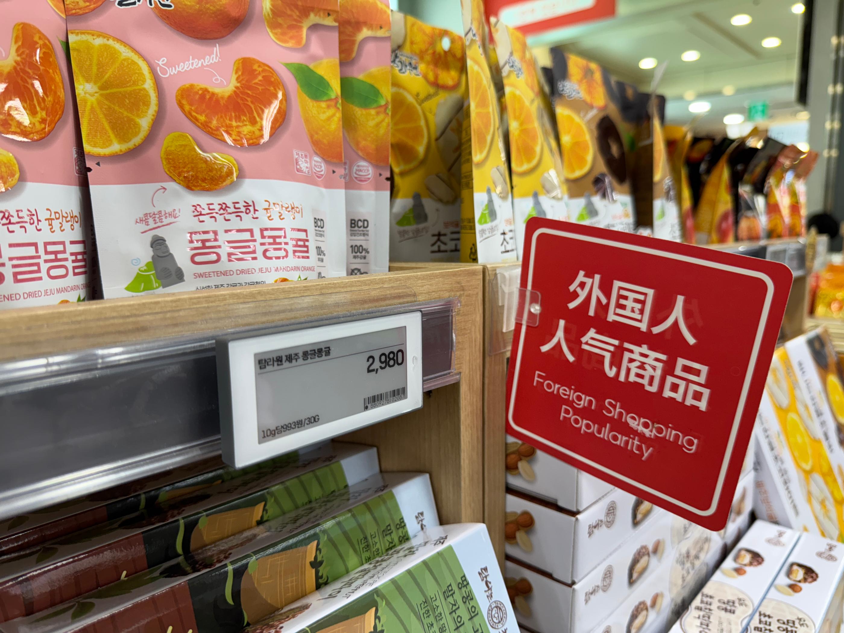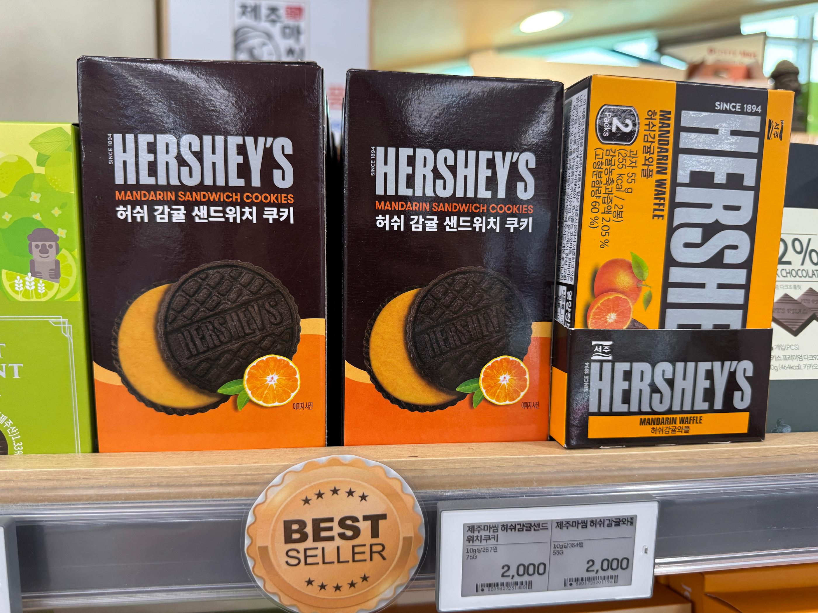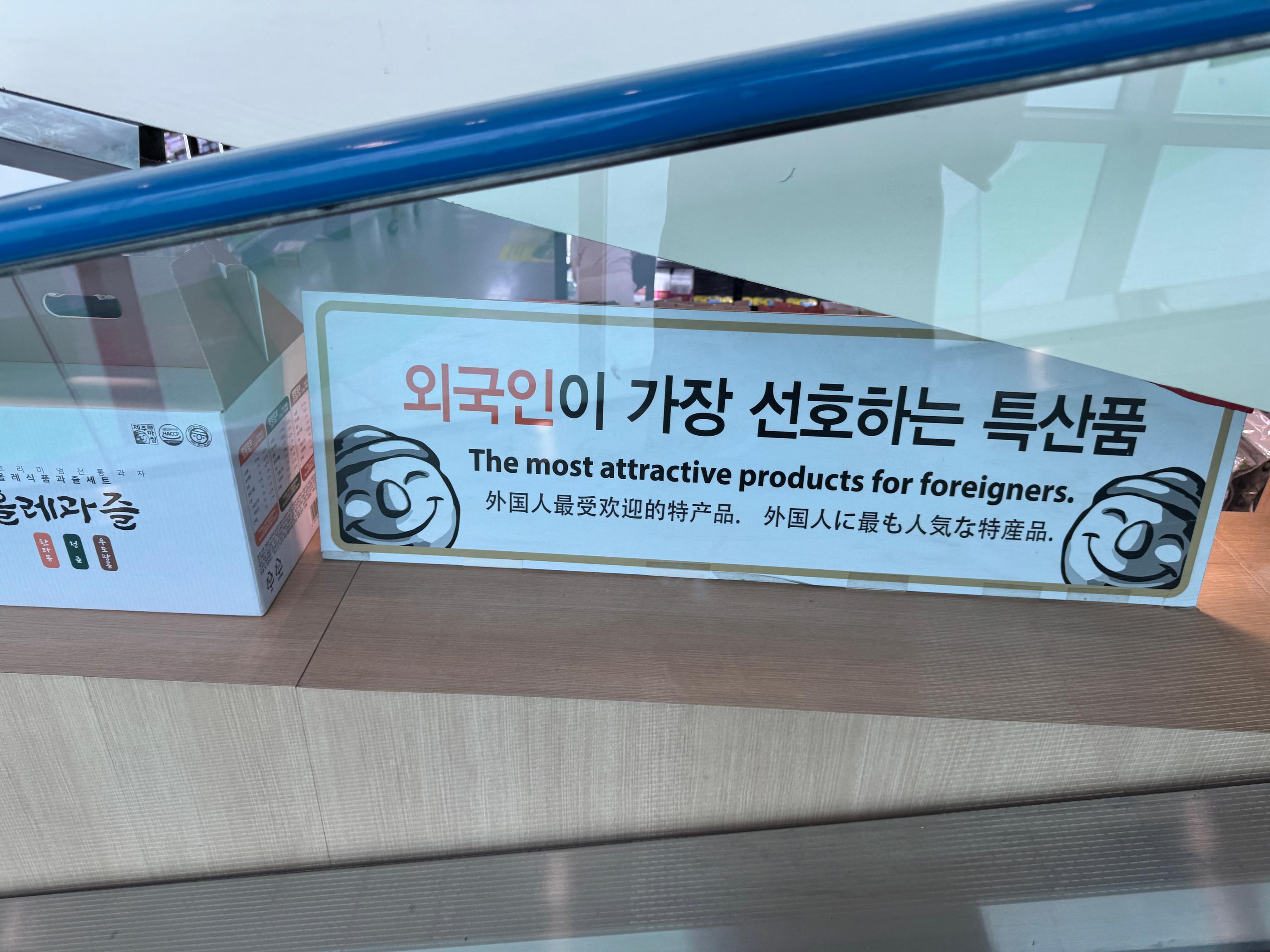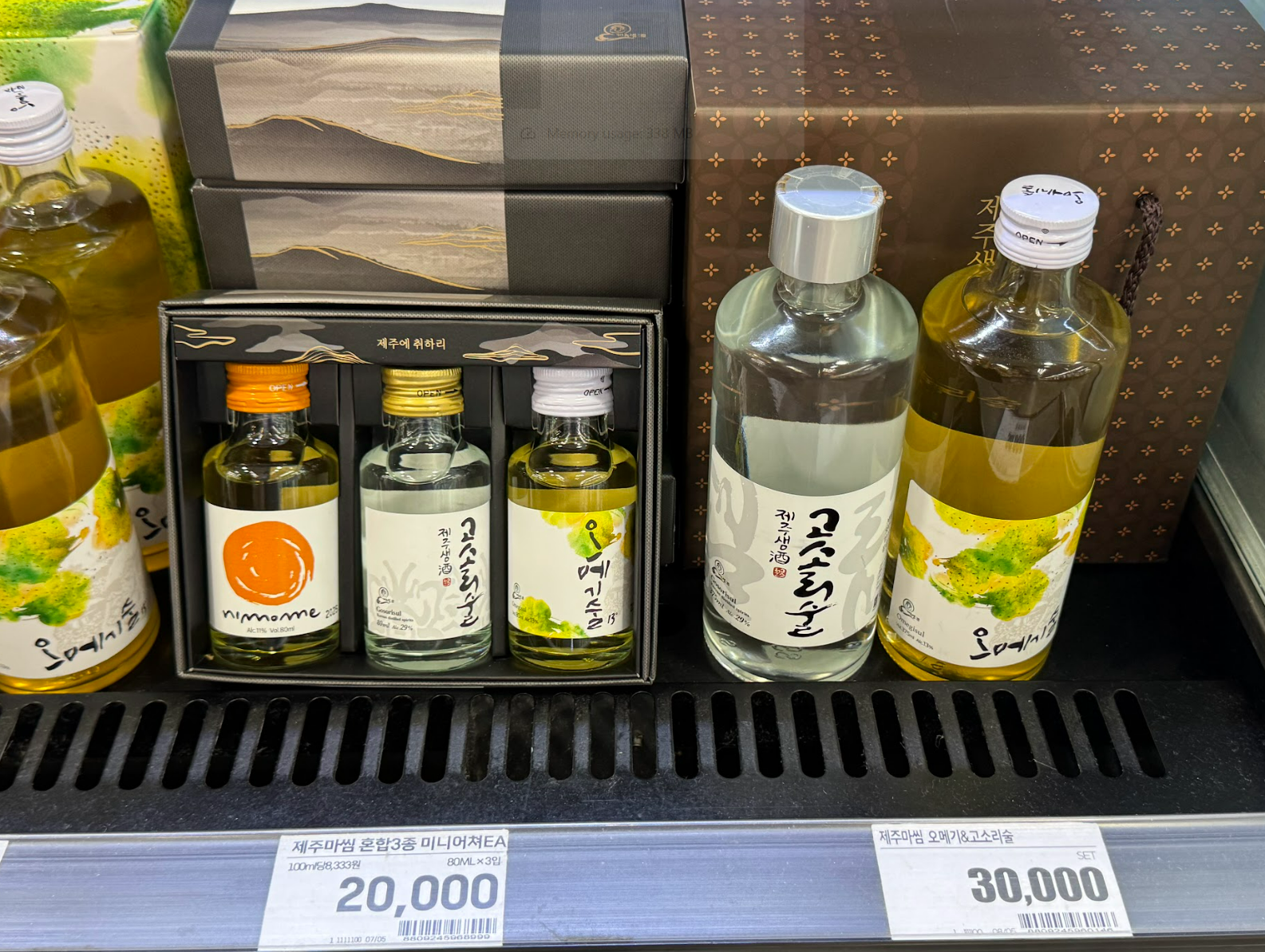 Khắp cửa hàng, hãy tìm các biển hiệu màu đỏ làm nổi bật những mặt hàng được du khách nước ngoài ưa chuộng. Những biển hiệu này chỉ ra những món quà lưu niệm tốt nhất, bao gồm trà Hallabong, thạch trái cây, bánh quy và rượu sản xuất tại Jeju—hương vị đích thực mà bạn chỉ có thể tìm thấy tại Đảo Jeju.