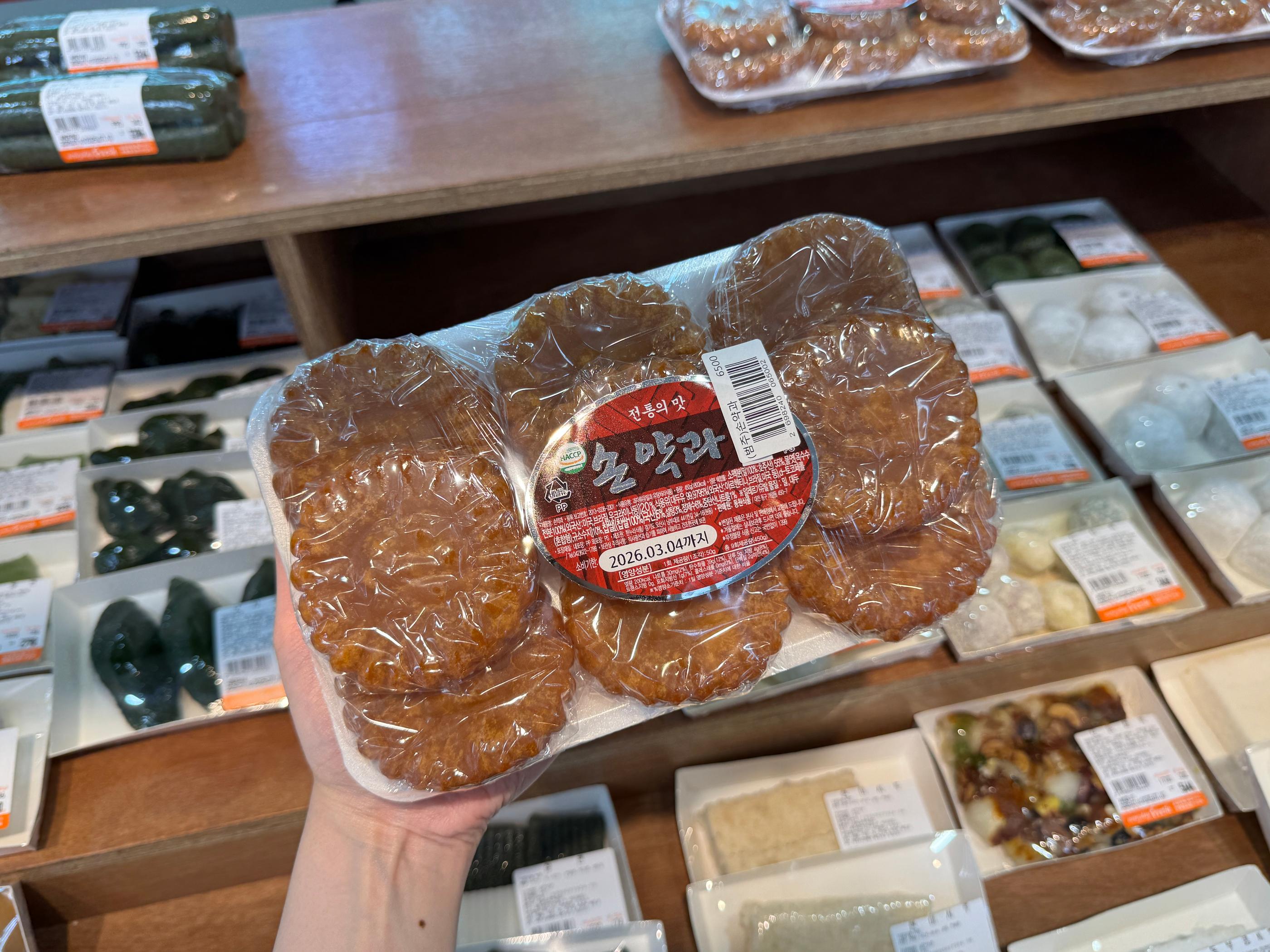 Để có một món truyền thống hơn, món yêu thích của tôi là Yaggwa (bánh quy truyền thống Hàn Quốc với siro)!