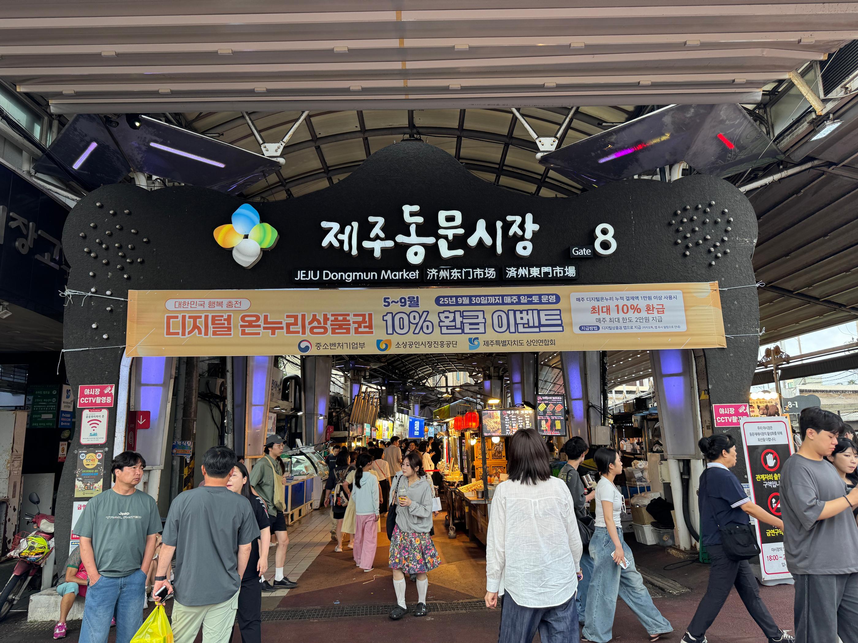Một khu chợ địa phương sôi động nơi bạn có thể thưởng thức ẩm thực đường phố Jeju và