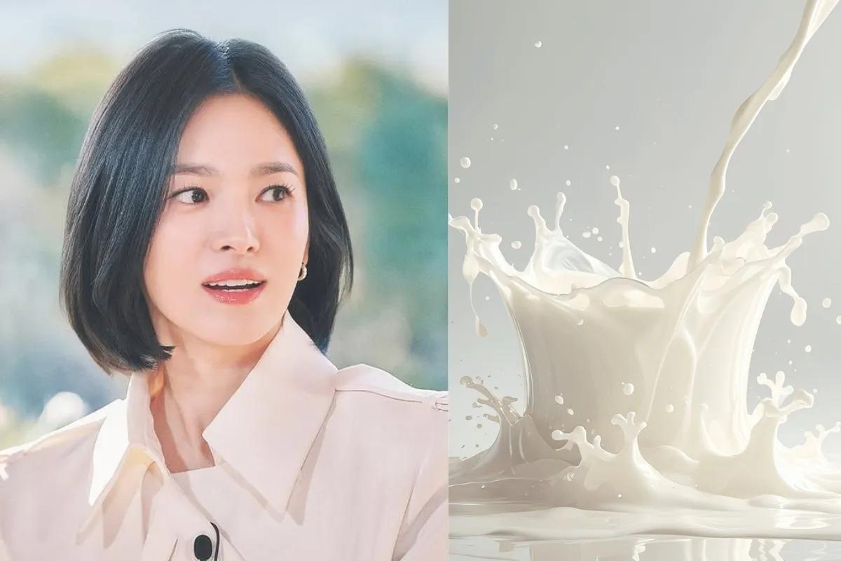 Hình mẫu của làn da trắng sứ không tì vết—phương pháp tẩy trang bằng sữa mà Song Hye-kyo ưa chuộng.