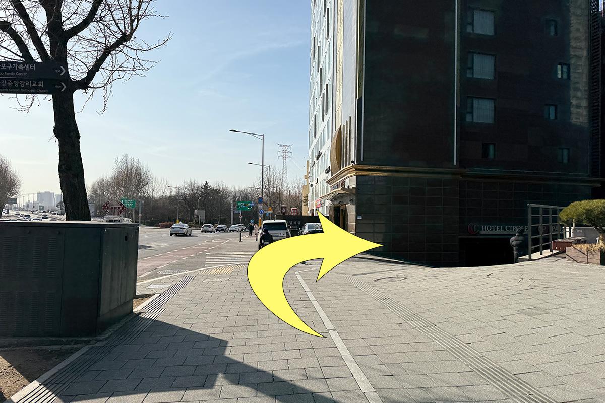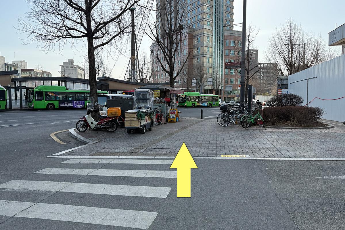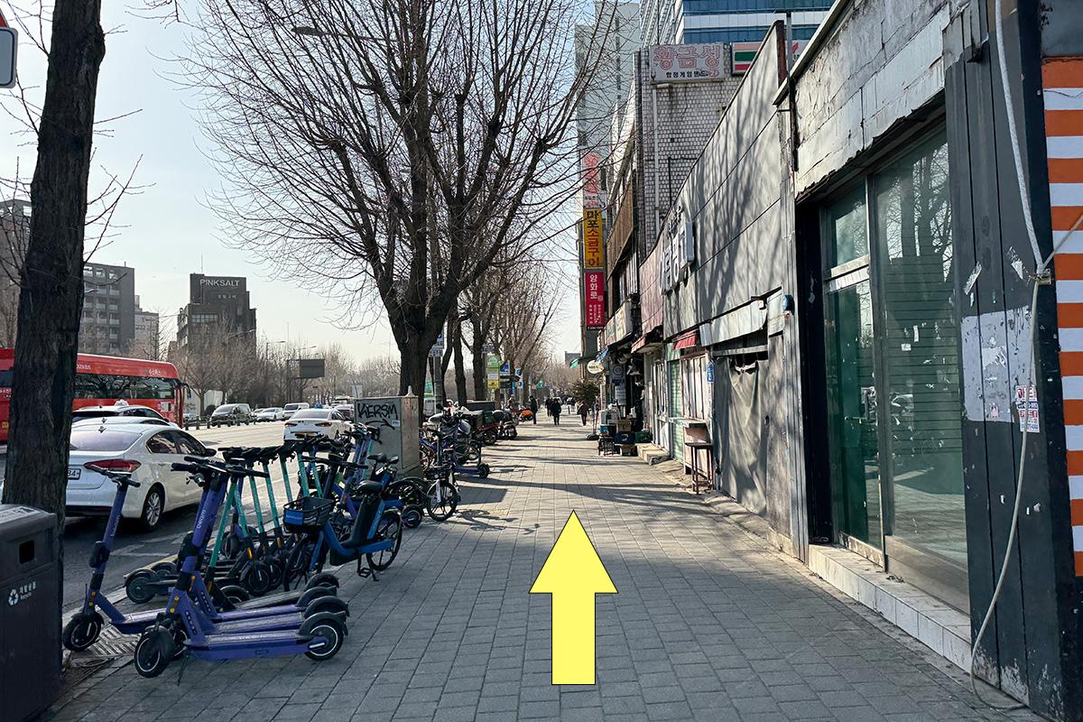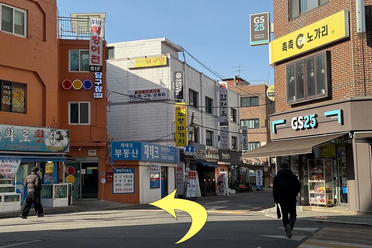 Đi thẳng, sau đó rẽ trái trước cửa hàng GS25.