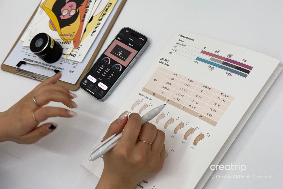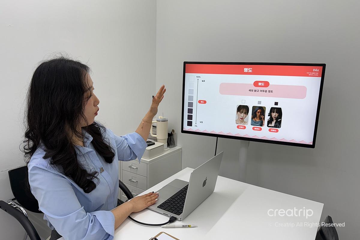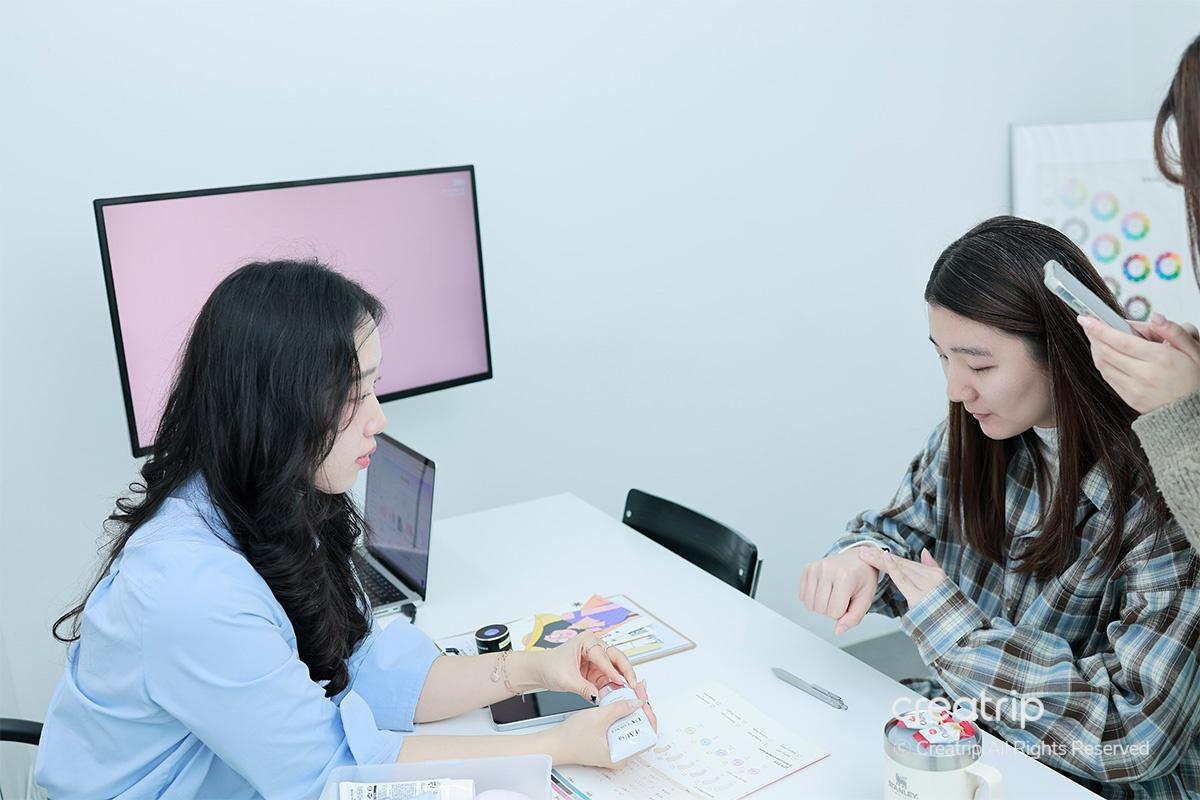 - Trong một studio Personal Color rộng rãi, thoải mái, 65-pyeong (approx. 215 m²), dịch vụ là reservation-only (100% đặt lịch trước). Bạn có thể nhận tư vấn chất lượng cao trong không gian riêng tư với sự tập trung cao.