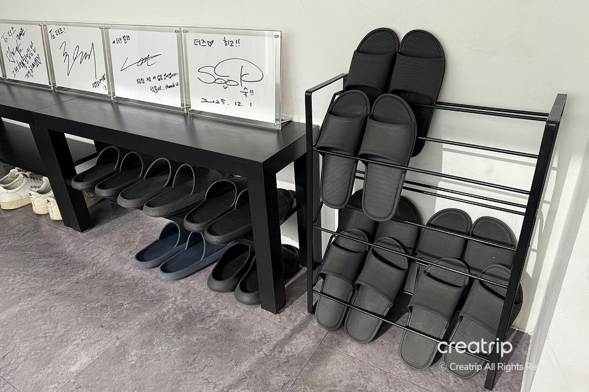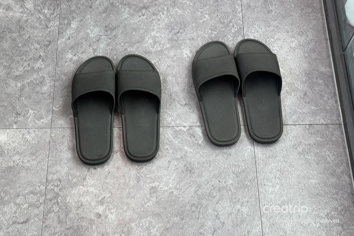 Đầu tiên, bạn thay vào đôi dép đã được sắp xếp gọn gàng ở lối vào trước khi bước vào.