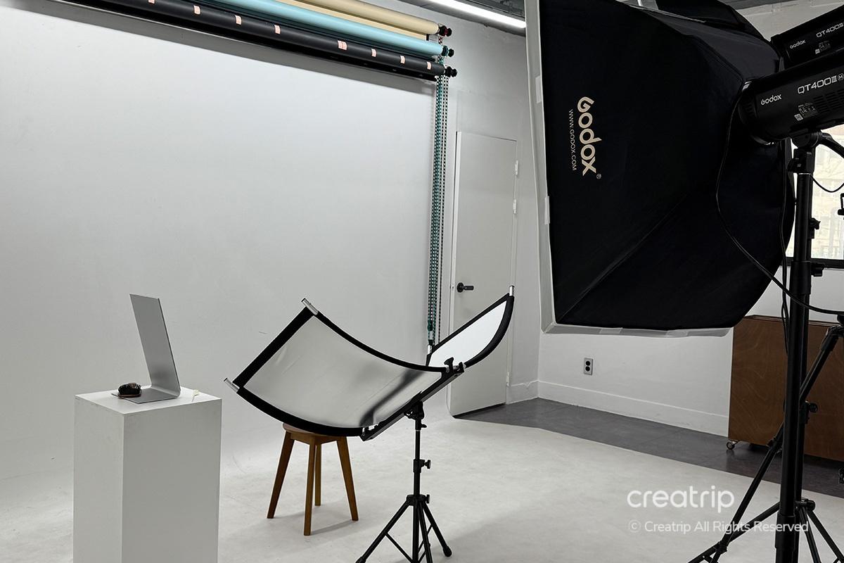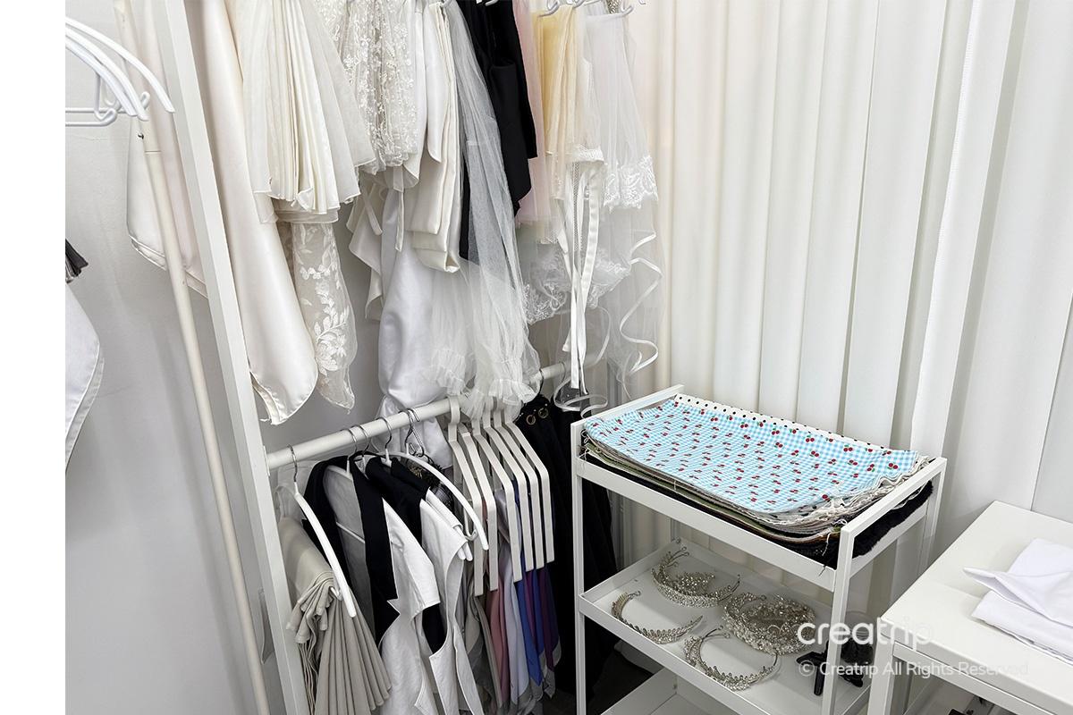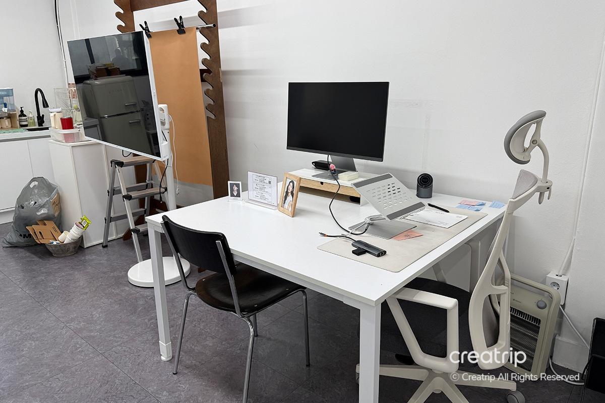 Không gian được chia thành một phòng Personal color consultation, một phòng makeup, và một khu vực chụp ảnh hồ sơ.