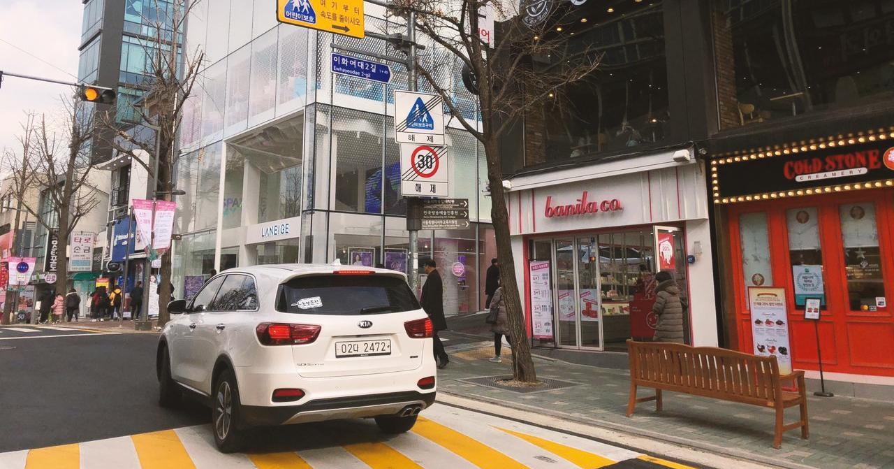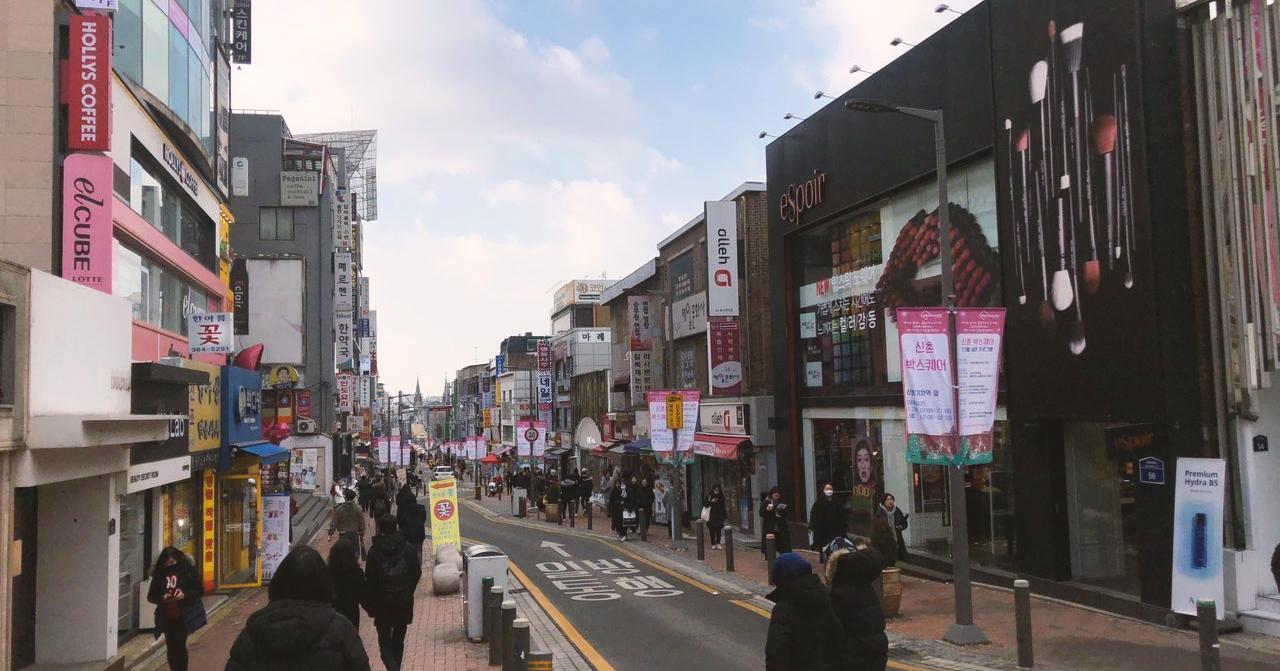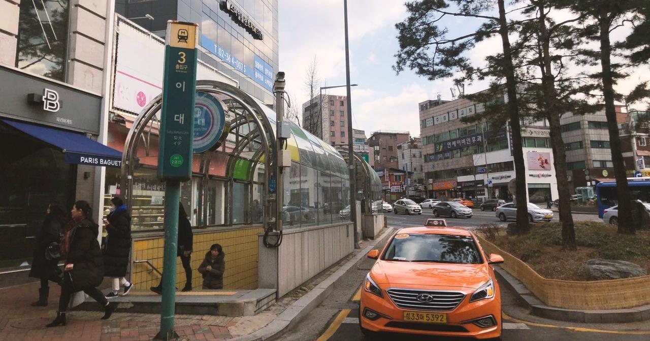 Sau khi ra khỏi cửa 2 hoặc 3 của ga Edae (đường tàu số 2, ga trường đại học nữ sinh Ehwa), các bạn đi thẳng về hướng cổng chính trường Ehwa là được. Cung đường mà bạn đang đi và con đường nhỏ, sầm uất nằm sát cạnh cổng chính của trường chính là trục mua sắm chính tại Edae.