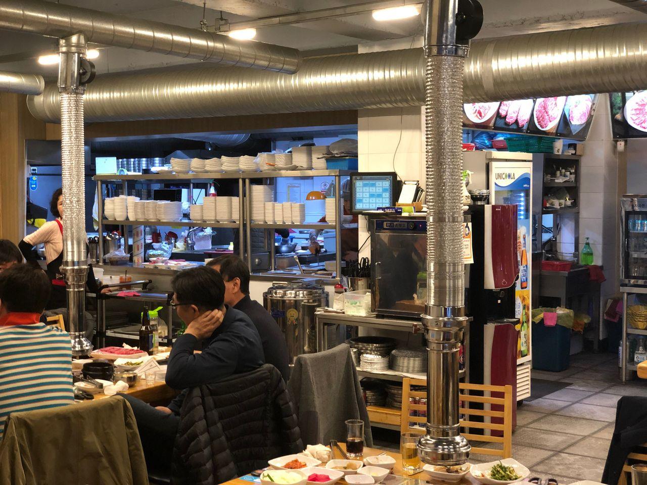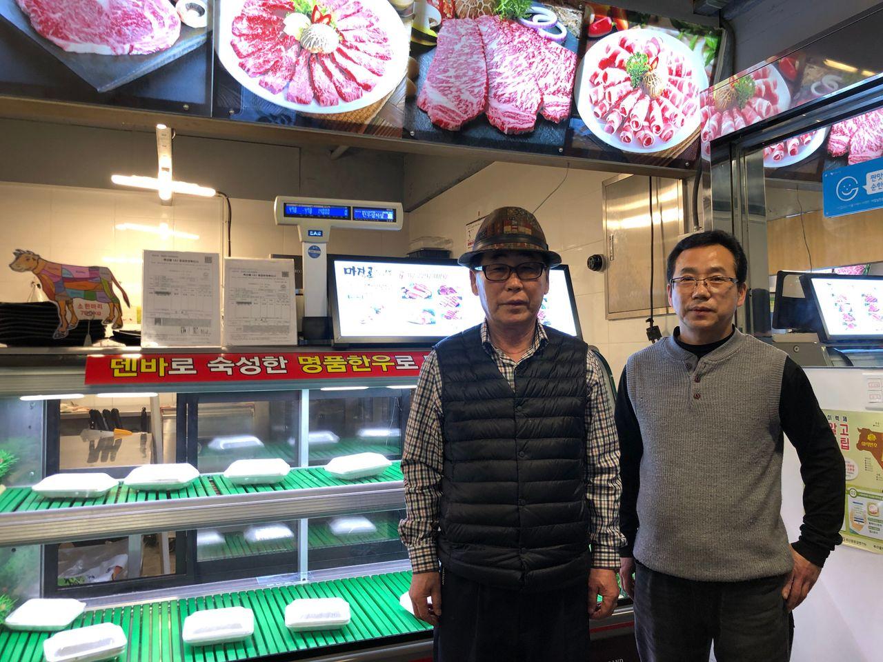 Đây là những người chủ đáng yêu của Majanggol; họ là cha và con trai! Họ sẽ giúp đỡ người nước ngoài bằng cách đến bàn và giúp bạn nấu thịt.