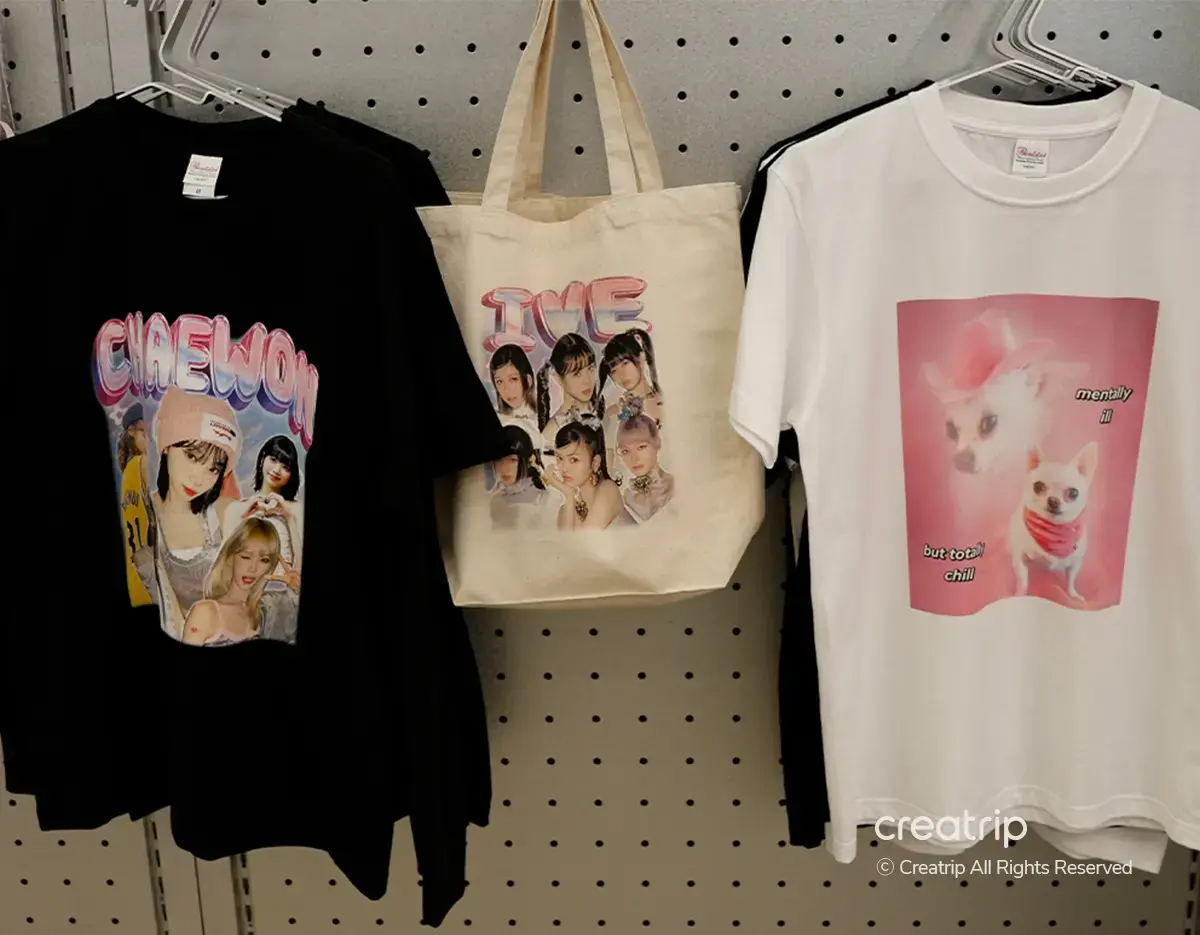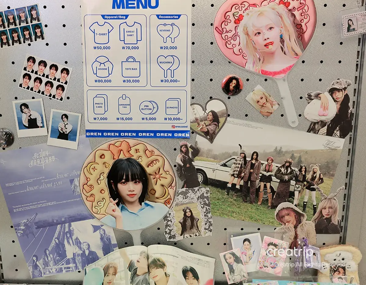 OREN là một điểm dừng rất độc đáo, đó là một cửa hàng đồ tương tác nơi bạn có thể tạo hàng hóa tùy chỉnh ngay tại chỗ bằng cách sử dụng ảnh của thần tượng yêu thích. Bạn có thể làm áo thun, túi vải, quạt cầm tay, và nhiều thứ khác, tất cả đều được cá nhân hóa bằng ảnh của bạn. Đây là một hoạt động vui dù bạn không phải là người sưu tập cuồng nhiệt, và bạn cũng có thể dùng nó để làm quà lưu niệm với ảnh gia đình, bạn bè, hoặc thú cưng.