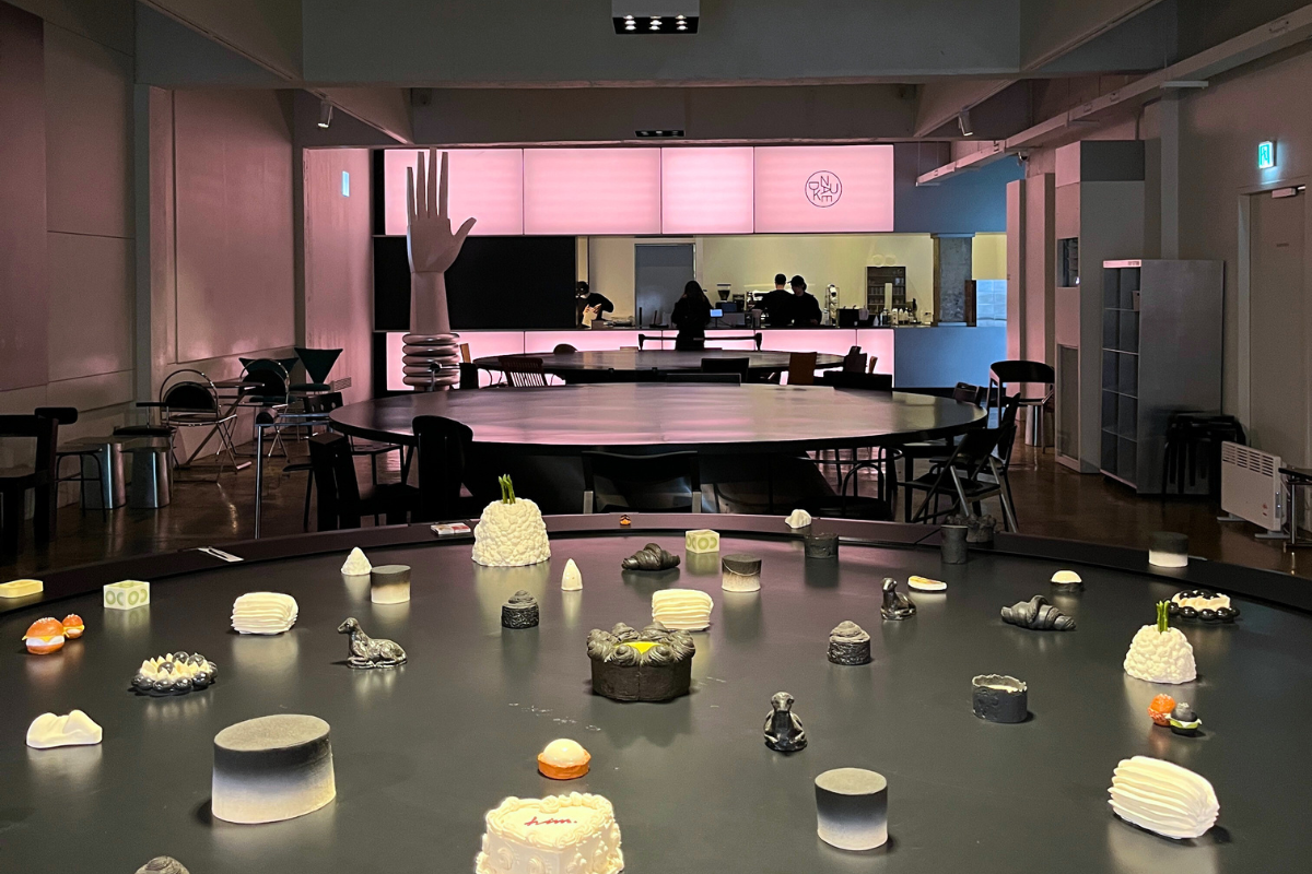 Ngay khi bạn bước vào, có một bàn tròn lớn được bày đầy các món tráng miệng độc đáo.