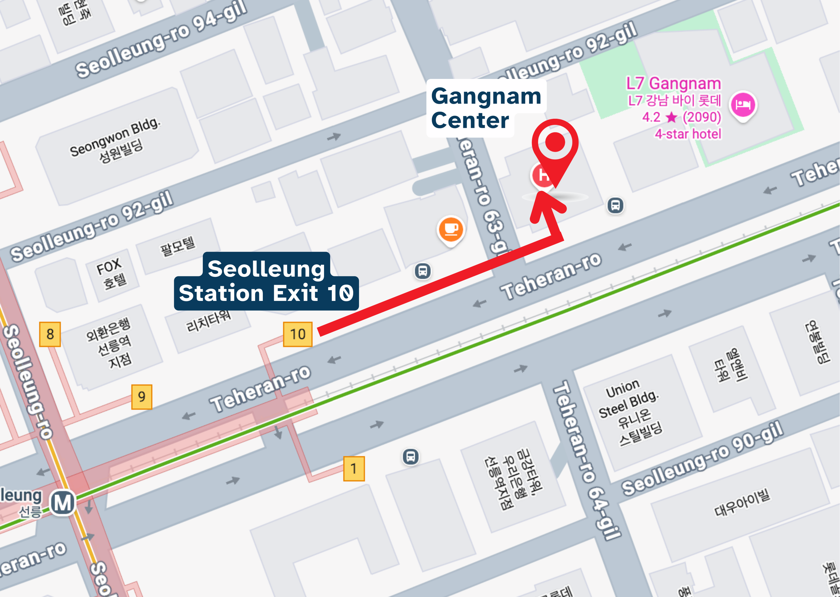 • Gangnam Center (강남 센터): Tầng 4, 411 Teheran-ro, Gangnam-gu, Seoul