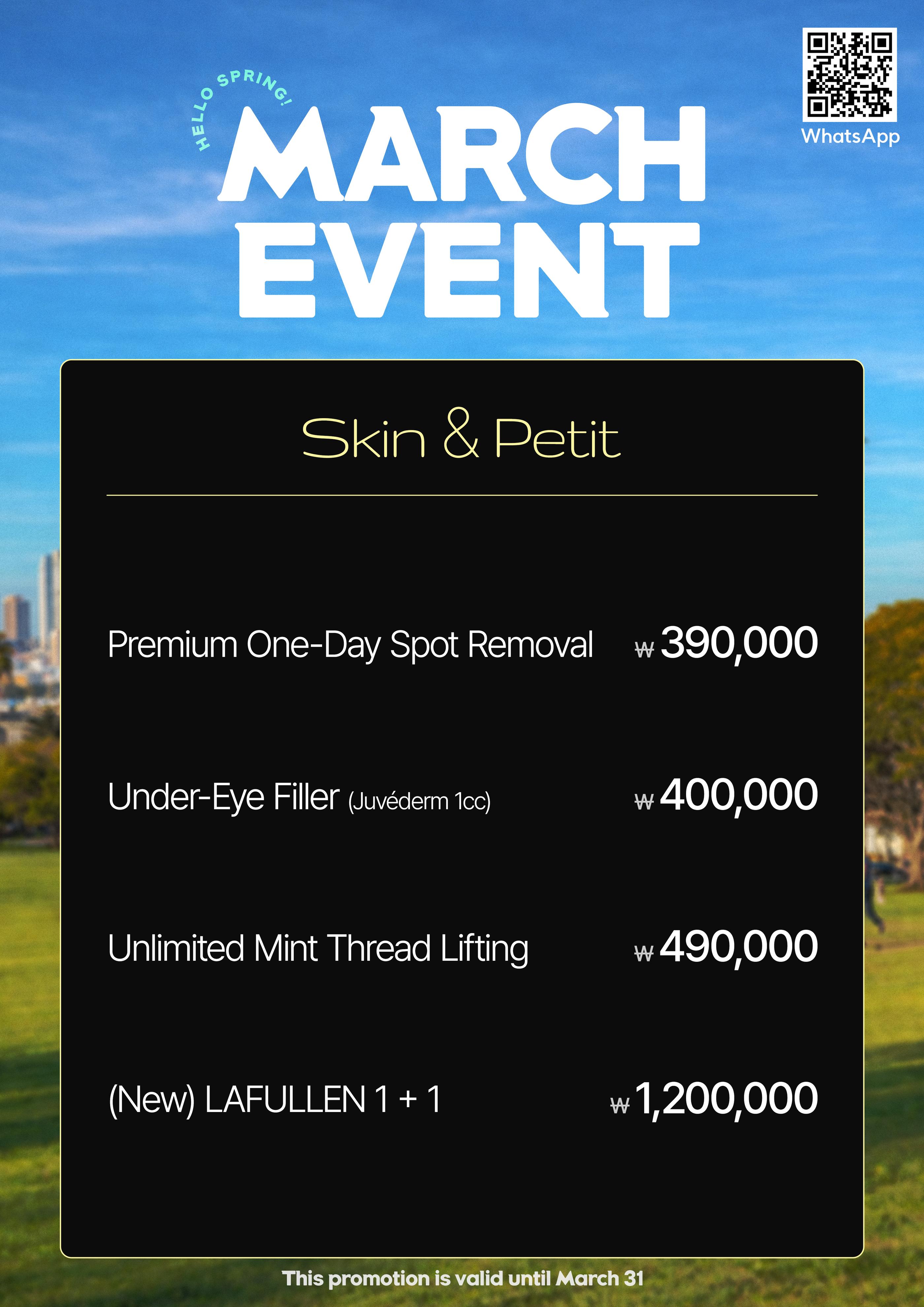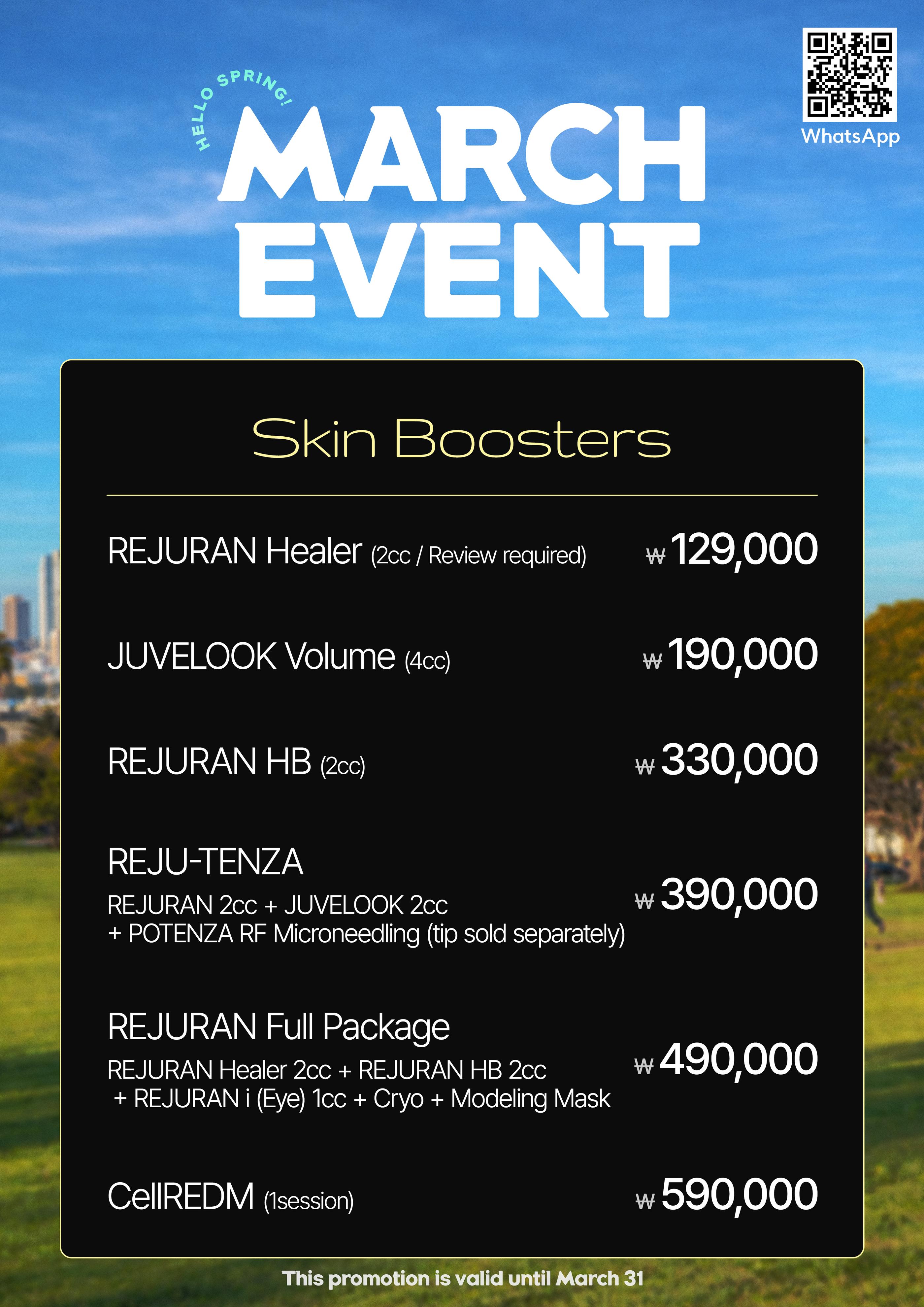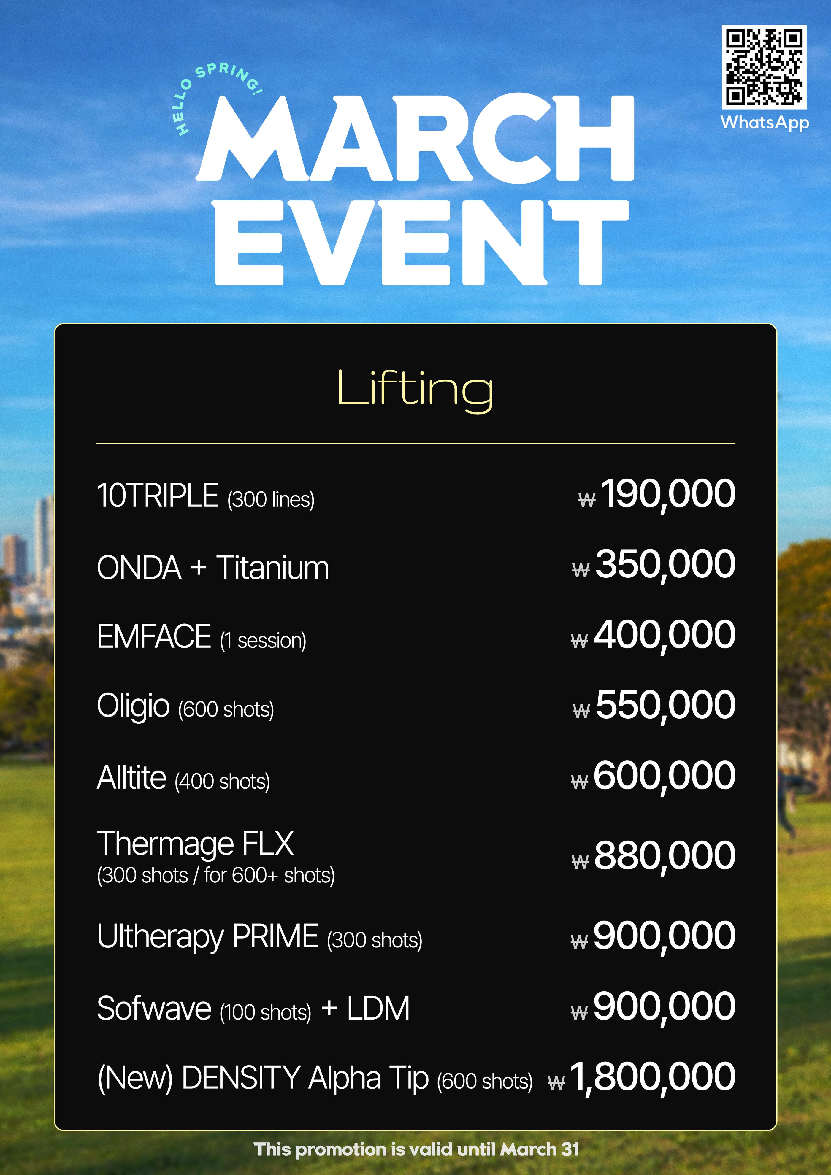 Lưu ý theo thủ thuật | Tránh ấn mạnh hoặc chạm nhiều lần vào vùng đã điều trị sau thủ thuật. Tránh rượu, phòng xông hơi, jjimjilbang, và tập luyện nặng trong một tuần sau thủ thuật. Có thể tạm thời bị sưng, bầm tím, hoặc cảm giác căng, nhưng phần lớn sẽ cải thiện tự nhiên. Vì đây là liệu trình kích thích tái tạo collagen, kết quả có thể xuất hiện dần dần. Nếu bạn gặp bất kỳ triệu chứng bất thường hoặc khó chịu kéo dài, vui lòng liên hệ phòng khám. |