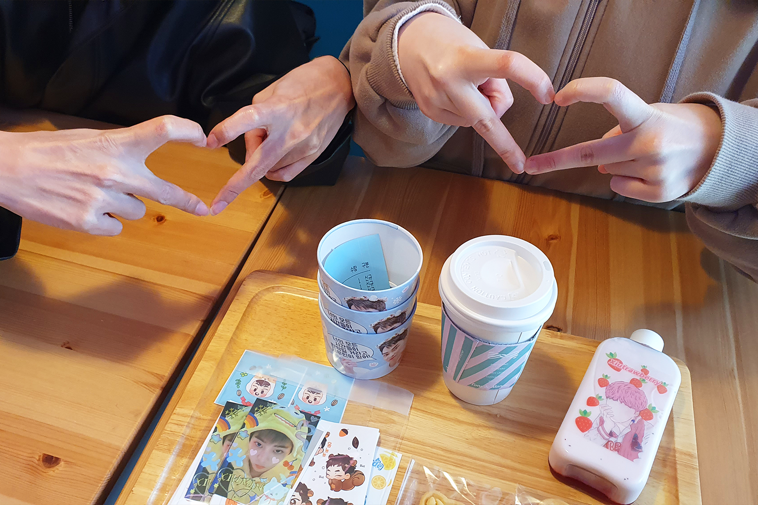 锵锵!小编点了Xiu美式(슈메리카노)、Xiu莓拿铁(슈트로베리라떼)以及两块饼干,原本还想品尝马卡龙的,但店家表示已经卖完了😭如果大家之后要去生日咖啡厅踩点,真的要在早上去啊,这样才能好好享受所有美食。