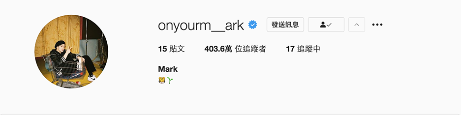 在比赛跑步、准备起跑前,裁判都会说「On your mark. Get set... Go!」,而NCT Mark就用了前面的那句「On your mark」当做他的instagram名称,而刚好他的名字也是Mark,第一篇贴文更配合「Get set. Go!」而发了准备起跑的照片,相当可爱。